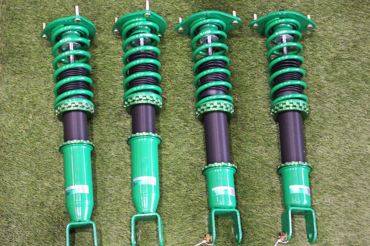 メイドinジャパンの車高調”TEIN-テイン-”ロングストロークと低フリクションがメリットになる複筒式を採用する”フレックスZ”を装着です!