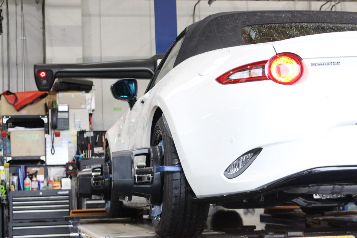 ローダウン+アライメントと合わせると装着可能なホイールサイズの幅がとても広いのがロードスター!まずはローダウンから作業開始です!!