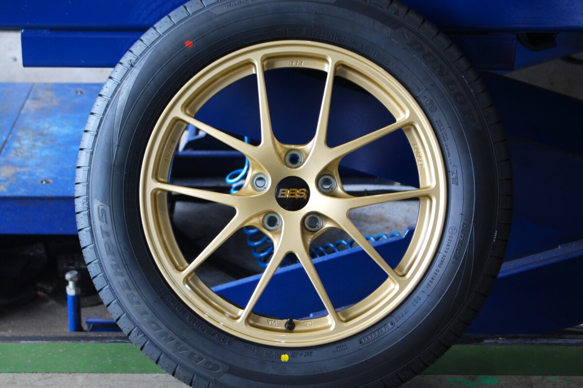 世界最高峰の自動車レースF1にもホイールを供給する鍛造メーカー「BBS」レースからの技術をフィードバックすることで最高峰のホイールを製造、本日装着する”RI-A”は重量面でも最軽量クラスのホイールに仕上がっています(*^^*)