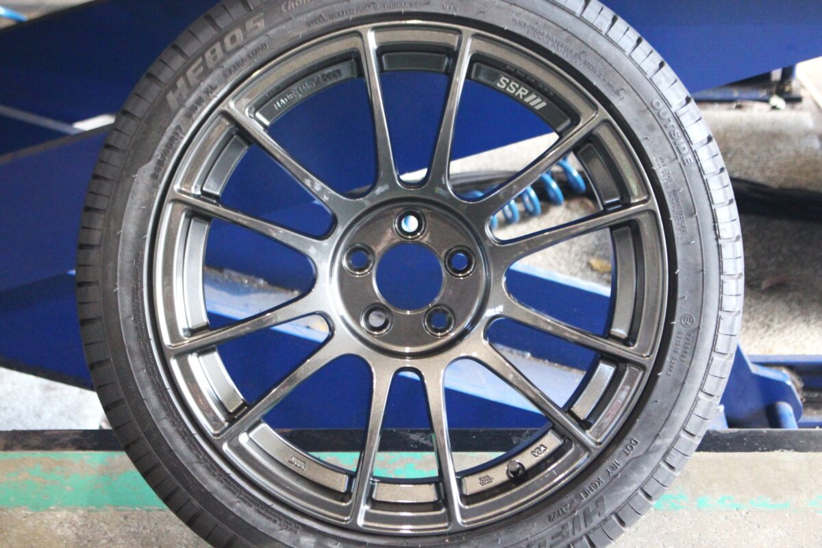 サーキット走行を楽しまれるお客様のホイールカスタムと攻めるアライメント調整を実施です!