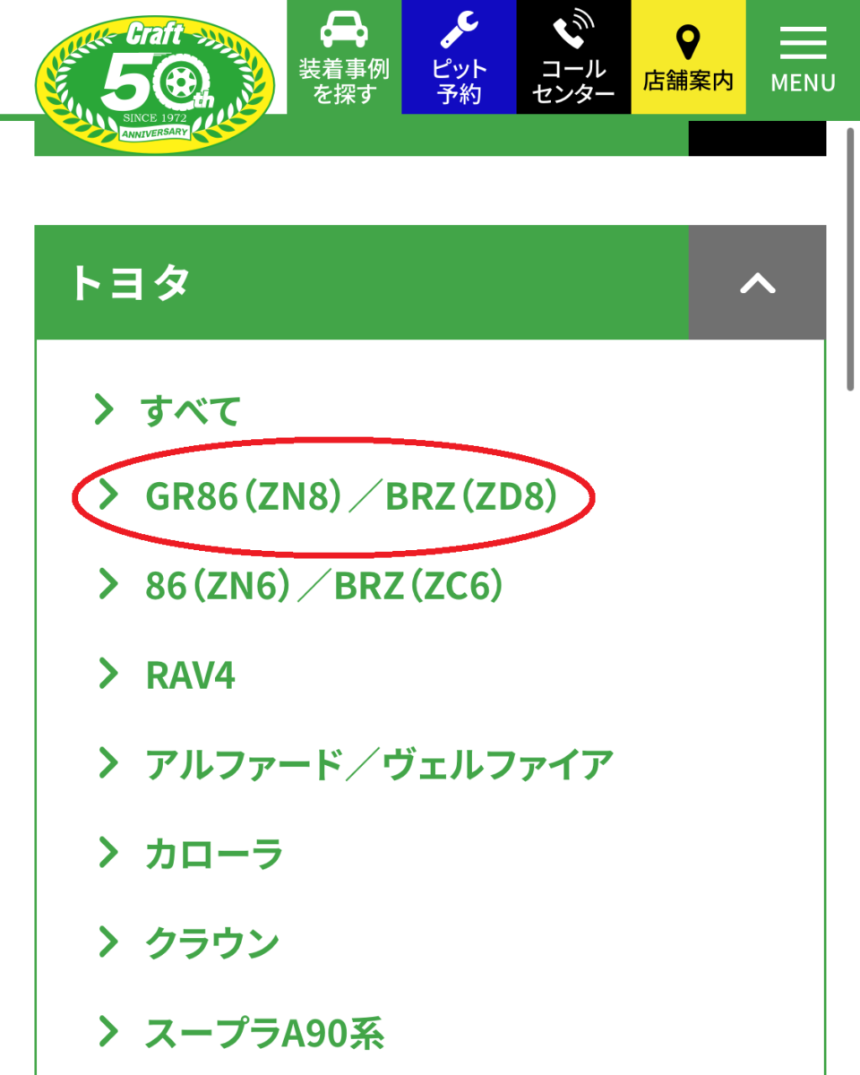 仮に"GR86(ZN8)/BRZ(ZD8)"をクリックすると…