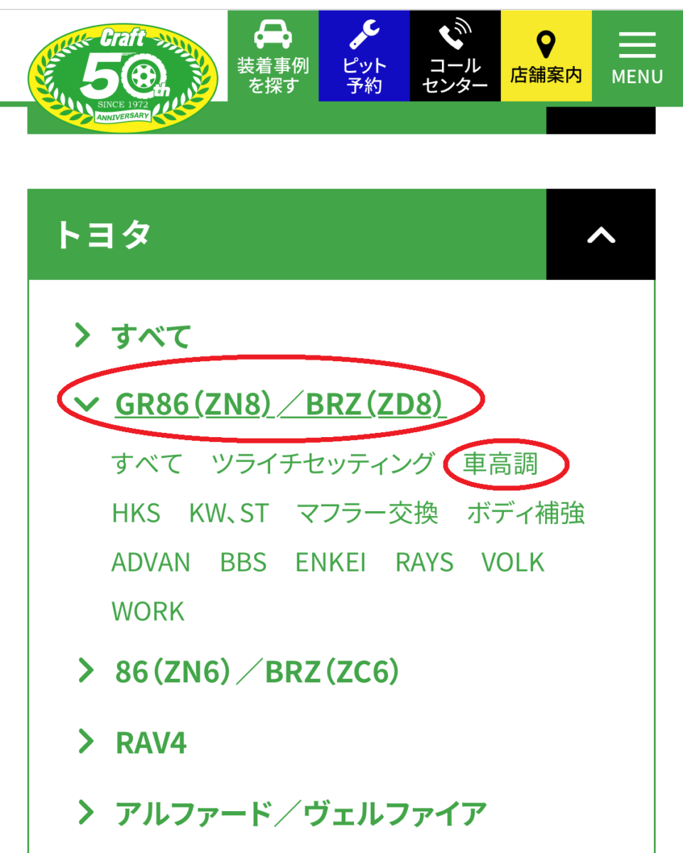 ここで"車高調"をクリック!