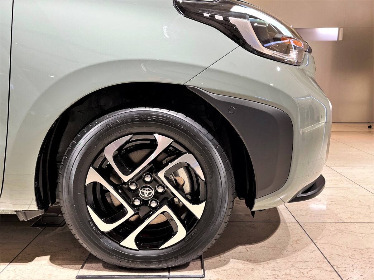 展示車両に装着されていたのは、オプション設定の15インチアルミホイールセット。