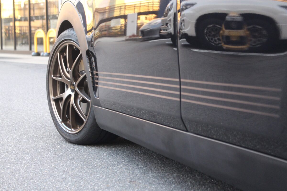 ホイールは、鍛造ホイール世界最高峰「BBS」がモータースポーツ用ホイールと同一の造形でつくる”RI-A”サスペンションより下にある部分はバネ下と呼ばれ、バネ下の軽量化はボディの軽量化より数倍の効果があると言われています。