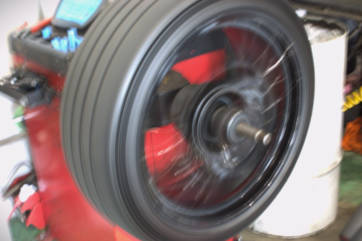 ホイールを組み替え後、バランサーでしっかりとバランスを整えていきます。