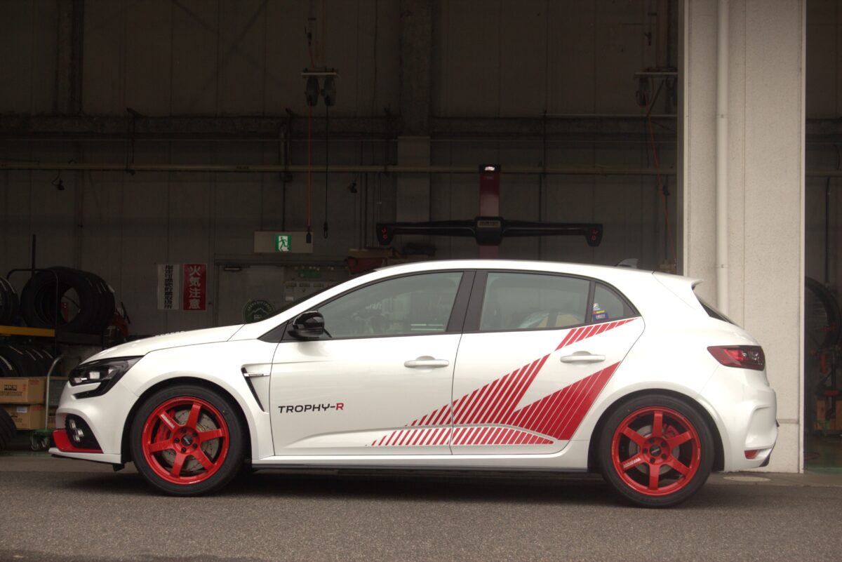 メガーヌR.S.のトップモデルであるメガーヌR.S.トロフィーから、リアシートを取り除いたりと計130kgにも及ぶ軽量化が施され、