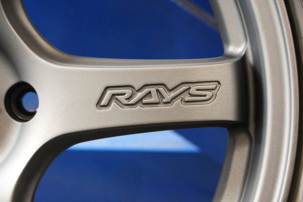 スポーク天面のRAYSのロゴは表面を切削して表現されており、高級感のある仕上がりになっています。