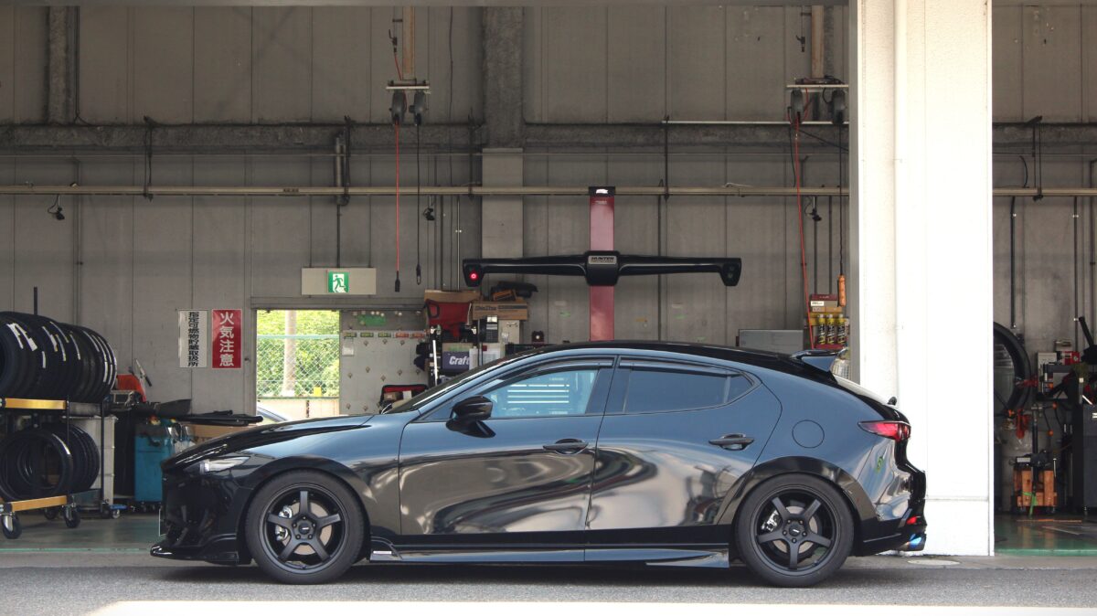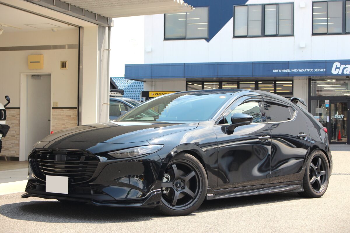 本日はマツダ3のホイール交換とローダウンをご紹介します。