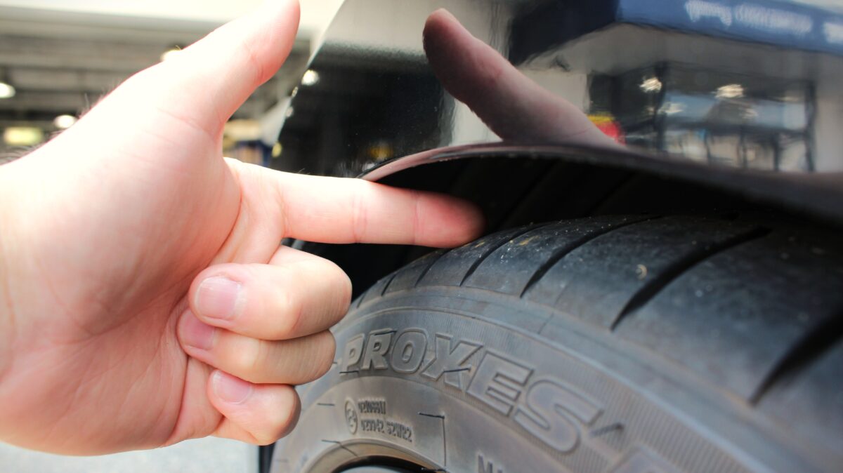 車高を下げることにより、正面から見たときにタイヤがハの字に傾いてしまいます。