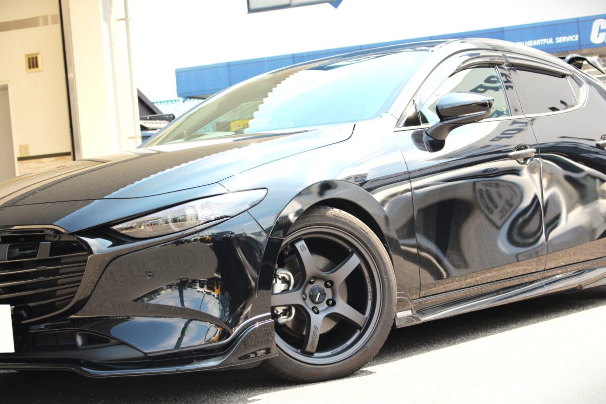 マツダ3のカスタムのご相談、RAYSホイールのご用命は当店にお任せください。