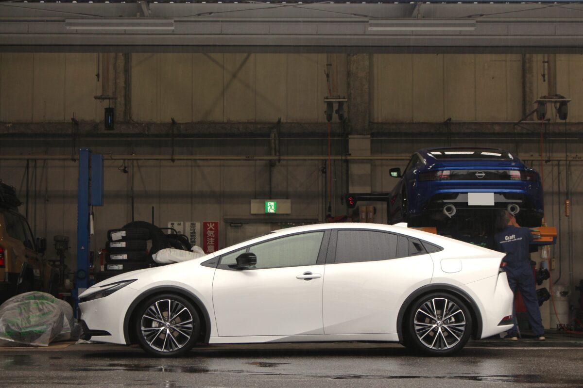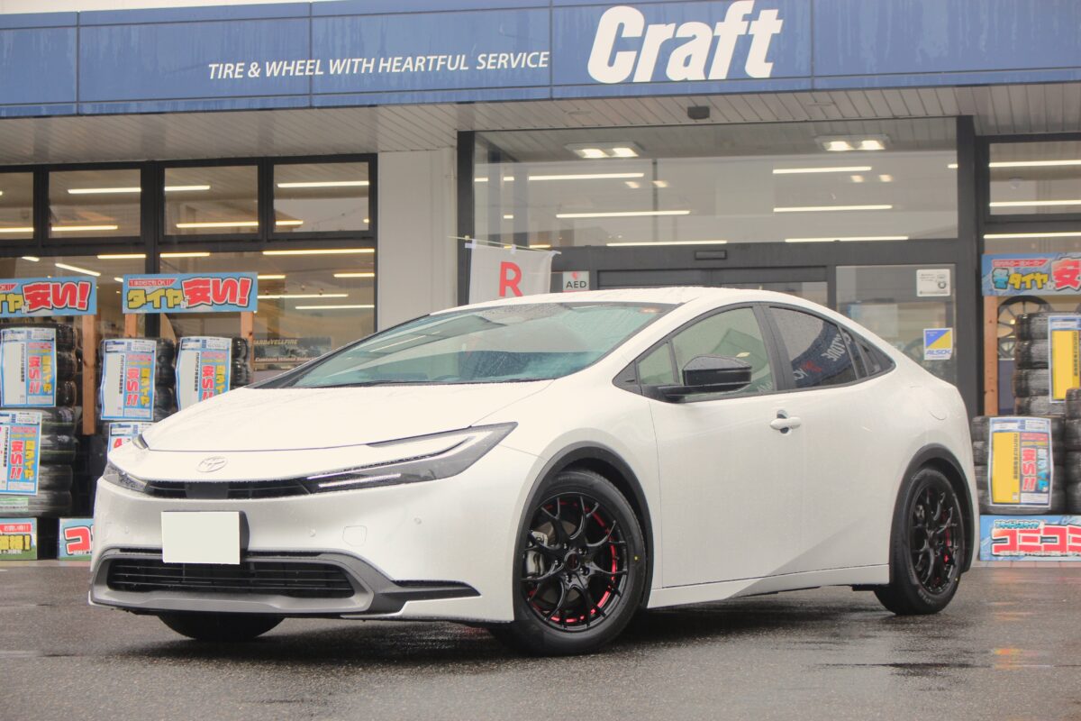リム深 20インチでツライチセッティング!! 60系プリウスオーナー様、ご相談お待ちしておりますよぉ~♬♬     いつもありがとうございます、クラフト厚木店・佐藤です!!   本日のご紹介はS様・60プリウスとなりま~す♬♬   新型60系プリウス、街中でも良く見掛ける様になりましたが、カスタムのご相談も増えてきましたよっ✨     本日は、ローダウン&インチアップのご依頼となります。   上の画像は仕上げのアライメント調整を行っている所ですね。   これからどんどんご依頼が増えるであろう60プリウス。   本日はマルチピースホイールを使ってカッコ良く仕上げましたよぉ~✨     ご購入いただいたホイールは 「 ウェッズ マーベリック 1212F 」   サイズは20インチをチョイス!!   60プリウスはカスタムと言う点では良い方向へ進化したんですよね。   その進化した部分とはホイールのナットホールとなります。     先代の50プリウスまではホイールのPCDが 5穴 100 となっていましたが、60プリウスからは 5穴 114.3 に変わったんです。   ナットホールが変わる事でそんなに違うのか?? って思われるかも知れませんが、全然違うんですよね。   ホイールラインアップの中でイチバン多い作りとなるのが1ピースホイール。   この1ピースホイールの場合、5穴 PCD 100 と言う設定はとにかく少ないんです。     ただただ、ホイールを交換出来れば良い。。。そんな形であればそれ程困る事は無いかも知れません。   ですが 「 せっかくホイールを交換するなら出ヅラや見た目にも拘りたい 」 っとなってくると色々と大変だったんですよね。   そこが改善された事で、ホイール選びの幅がとぉ~っても広がった60プリウス。   なので、今回も 実車計測 を行いツライチセッティングにチャレンジしちゃいましたよっ 👍     コチラが横から見た1ショット📷✨   ローダウンアイテムは 「 RS☆R TI2000ダウン 」 を装着し、程良いローダウンスタイルをGet。   程良いと記載しておりますが、かなりバランス良く仕上がって見えますよねっ♬♬   ローダウン量は-25mm~-30mm程。     ローダウン量を考慮したホイールインセット。   ツライチセッティングを行う場合、良く行うのはローダウン後に実車計測を行いホイールをオーダーする流れ。   ですが、今回はローダウンとホイール交換を同時に行いたいと言うご要望もあり事前にホイールをオーダー。   その場合、計測時に色々と頭を使いますが。。。無事カッコ良く仕上げる事が出来ましたよっ 👍     気になる出ヅラはこんな感じ!!   キレイに仕上がっていますよね??   ノーマル車高時に色々と計算をしたので、担当佐藤も珍しく頭を使っちゃいました。笑   これからカスタムのお話がどんどん増えるであろう新型60プリウス。   愛車のカスタムはクラフト厚木店・担当佐藤までぜひご相談下さいねっ♬♬     S様、この度はご利用誠にありがとうございました!!   一緒になって考えたカスタムプラン、カッコ良く仕上げる事が出来ましたねっ 👍   バッチリ決まった愛車でのドライブは格別ですよね!!   それではまたのご利用お待ちしておりま~す☆☆