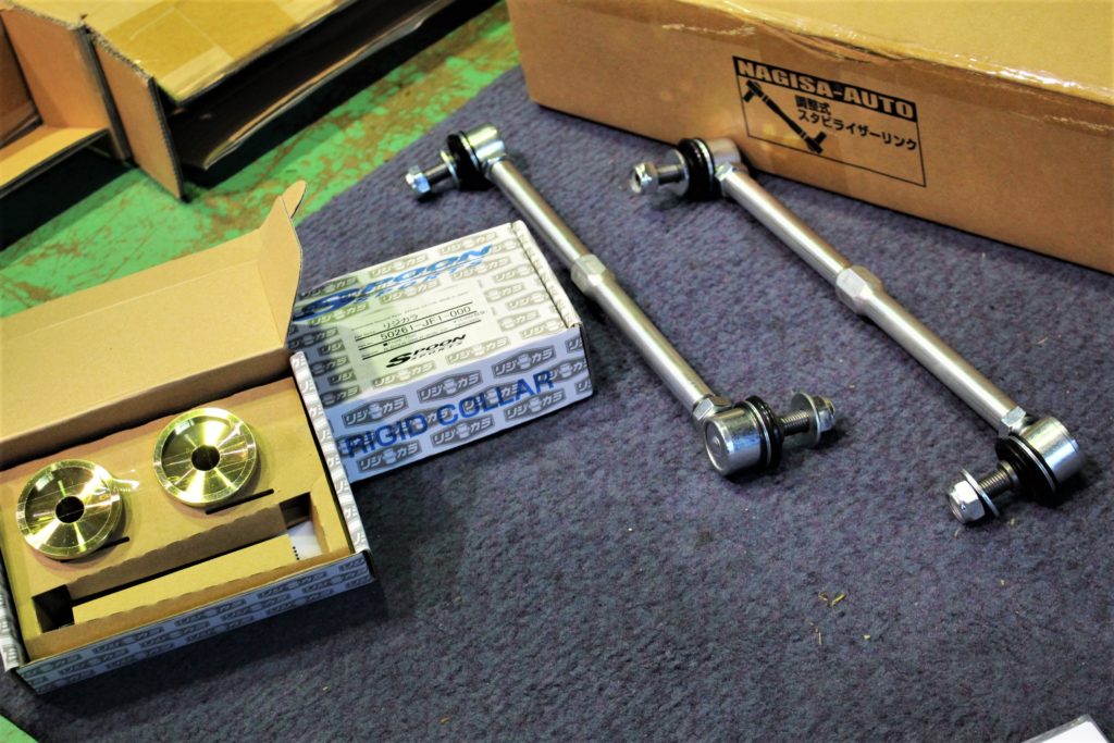 フロント:CUSCOスタビライザーとナギサオート調整式スタビリンク。