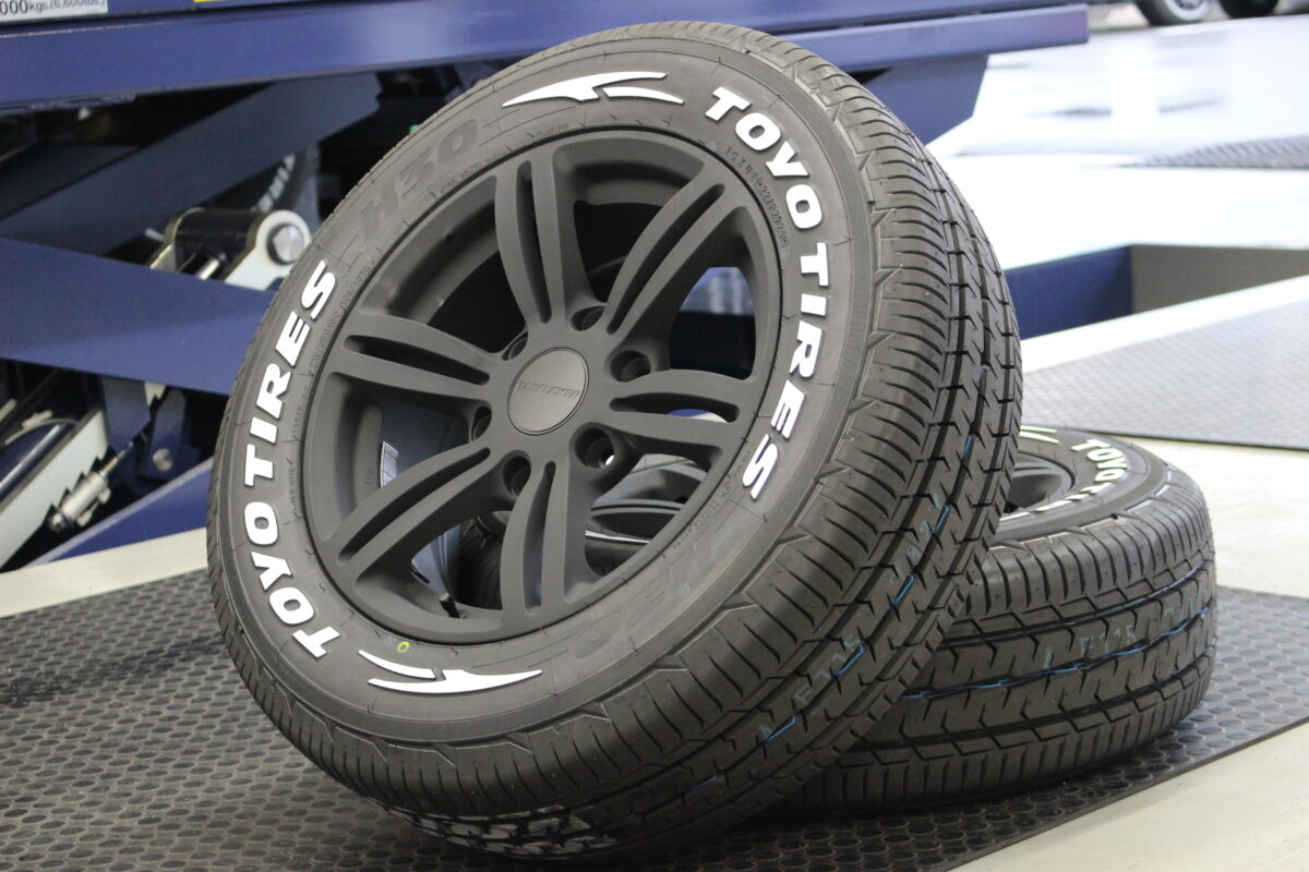 TOYO TIRESの横に流線形のデザインを入れてサイドウォールのほとんどをホワイトレターで占めることでタイヤの主張がしっかりされます♪