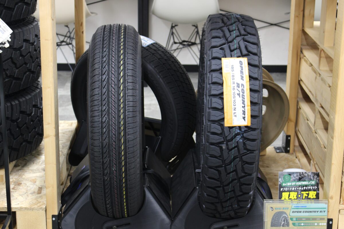 (左)純正サイズ 175/80R16 (右)カスタムサイズの185/85R16