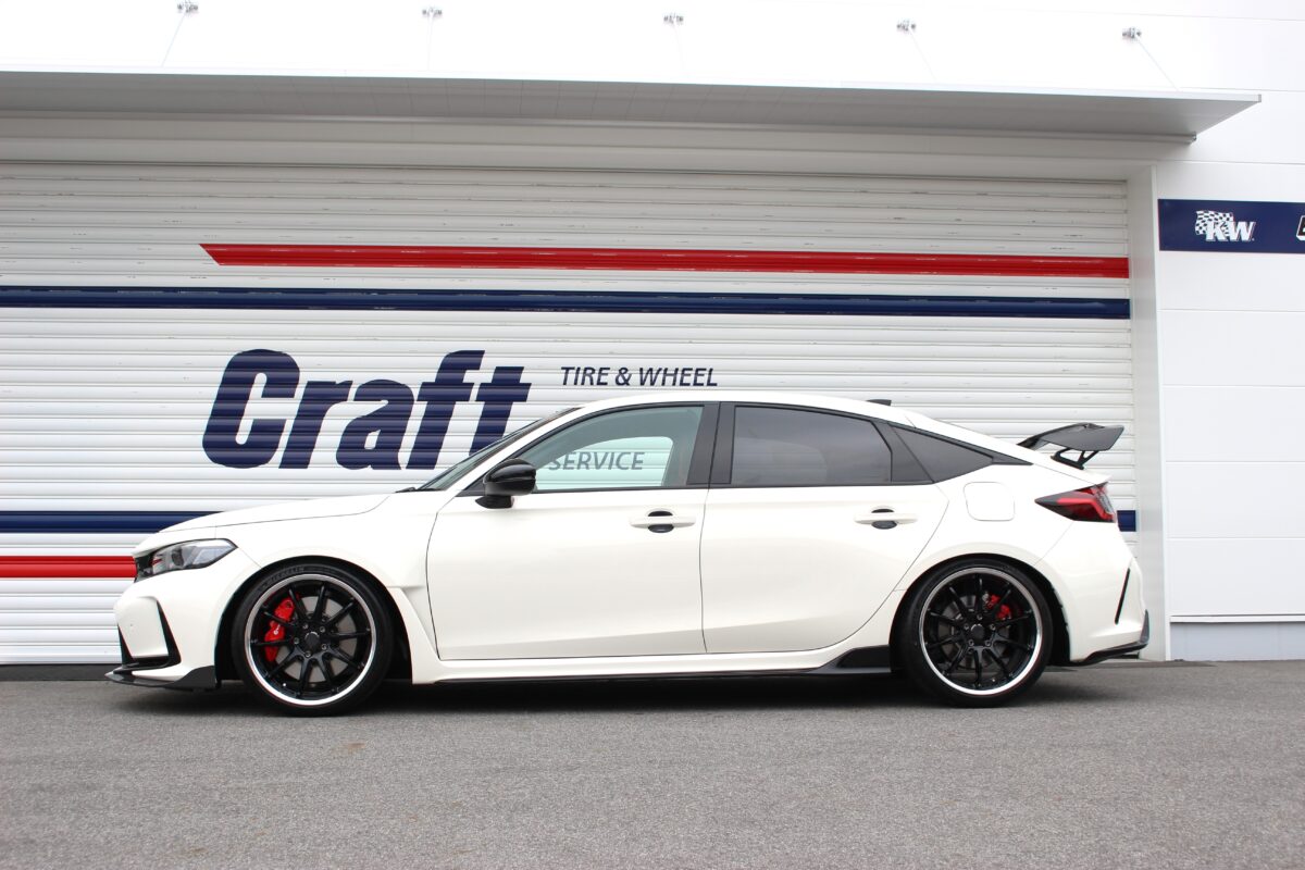 限定シビックタイプRも太履きツライチで フェンダーを追い込みます。 こんにちは、店長の小林です。 FKシビックが多い鈴鹿店ですが現行FK8タイプR の先代にあたる台数限定車 FK2シビックタイプRも 度々ご相談がございます。 強烈なフェンダーで標準20インチ、ブレンボで M14ボルトとFK8と同じステータス。 ということで悩みもFK8と同じなんです(汗) その迫力のフェンダーにツラウチ気味で収まる純正は ちょっと物足りなく、でもってキャパはあるものですから こういうのを履かせたくなっちゃいます(笑) ■WORKエモーションT7R 2P 19in 純正8.5Jから9.5Jに幅をアップ。 パツッと引っ張ったニットーがカッコイイですね。 正面からでも分かるスポークの湾曲は もちろんディープコンケイブフェイス。 フェンダーに負けないくらいホイールに インパクトを与えたかったんです。 ナットは鈴鹿店 "今売れ" キョーエイ モノリスナット。 FKシビックはM14ボルトなので普通の国産より ボルト径が太いのですが、モノリスは対応OK。 「ボルトが太い=ナットホールを圧迫」 ホイールのワンポイントとなる他、M14車両に おけるメンテナンス性が抜群でして、「内がけ」 であることからナットホールにキズをつけること なく着脱が可能なんです。 Wheel:WORKエモーションT7R 2P 9.5J-19in 5/120 アッシュドチタン Tire:NITTO NT555G2 最初から9割が仕上がっているFK2シビック。 お好みのホイールを入れれば100%なワケですが おクルマの完成度に負けない迫力を 出すことが必須条件。太履き9.5Jのディープ コンケイブで凄味と追求しました。 ネオクロカラーのモノリスが スポーティなアッシュドチタンに似合います。 エアロの迫力に目がいきがちのFK2。 足元をしっかりやることで全体にまとまりが 出ましたね。 前後9.5JですのでローテーションOK。 19インチへのインチダウンで走りも 楽しんでいただけます。 足元のブラッシュアップで 自分だけのFK2シビックに。 当店は純粋に「ストリートでのカッコ良さ」 を追求しています。この度はご相談いただき まことにありがとうございました。 3Dアライメント の ご予約 は 下記番号 へ (スマホの場合はタッチでかかります) 「 クラフト鈴鹿店 」 ℡:0593814311 三重県鈴鹿市西玉垣町15-2 毎日更新のクラフト鈴鹿店は スマホで「お気に入り」登録! https://craft-web.pro/blogs/suzuka/