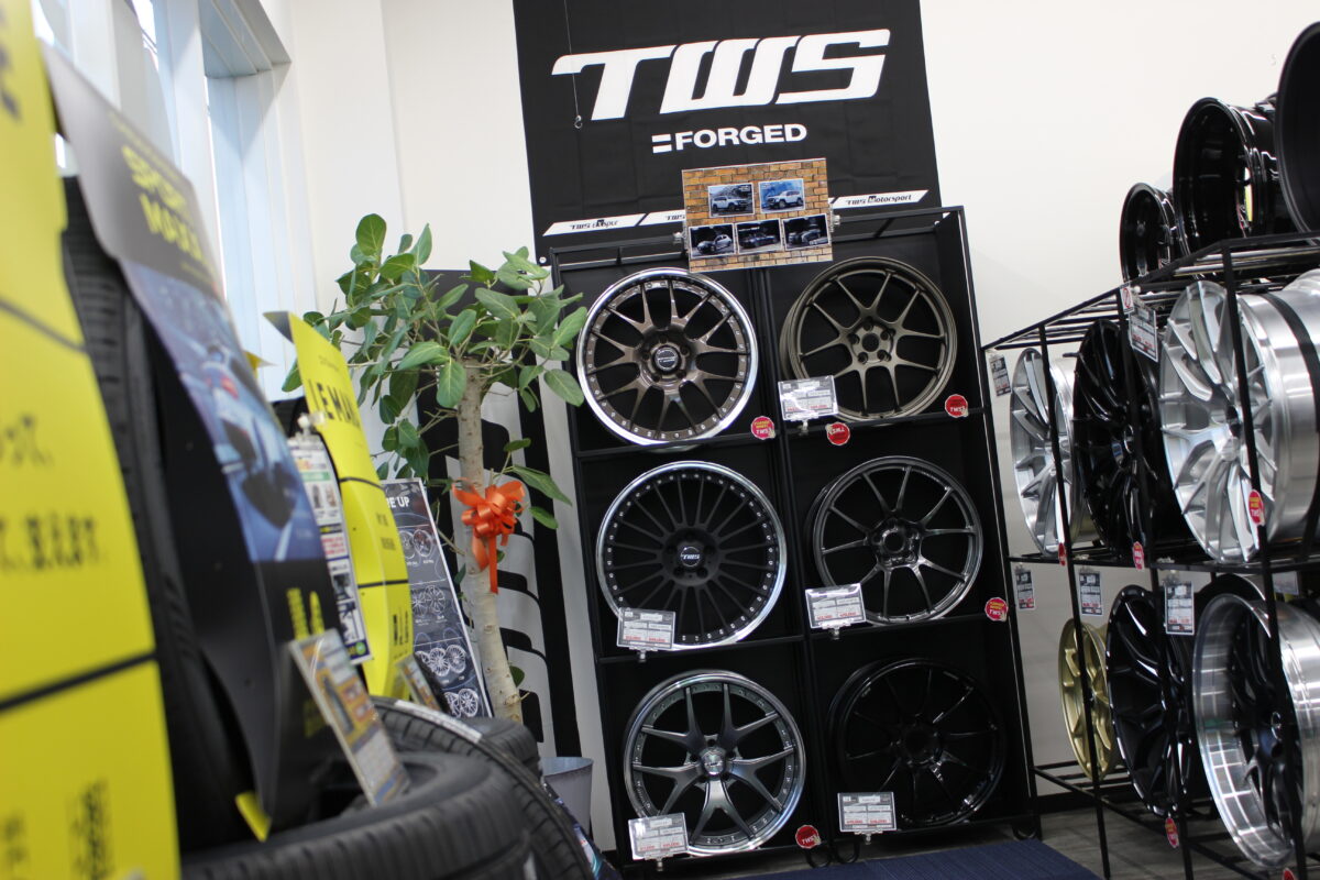 RAYS・WORK・BBS・TWSなどのスポーツ系ホイールの展示も豊富です。
