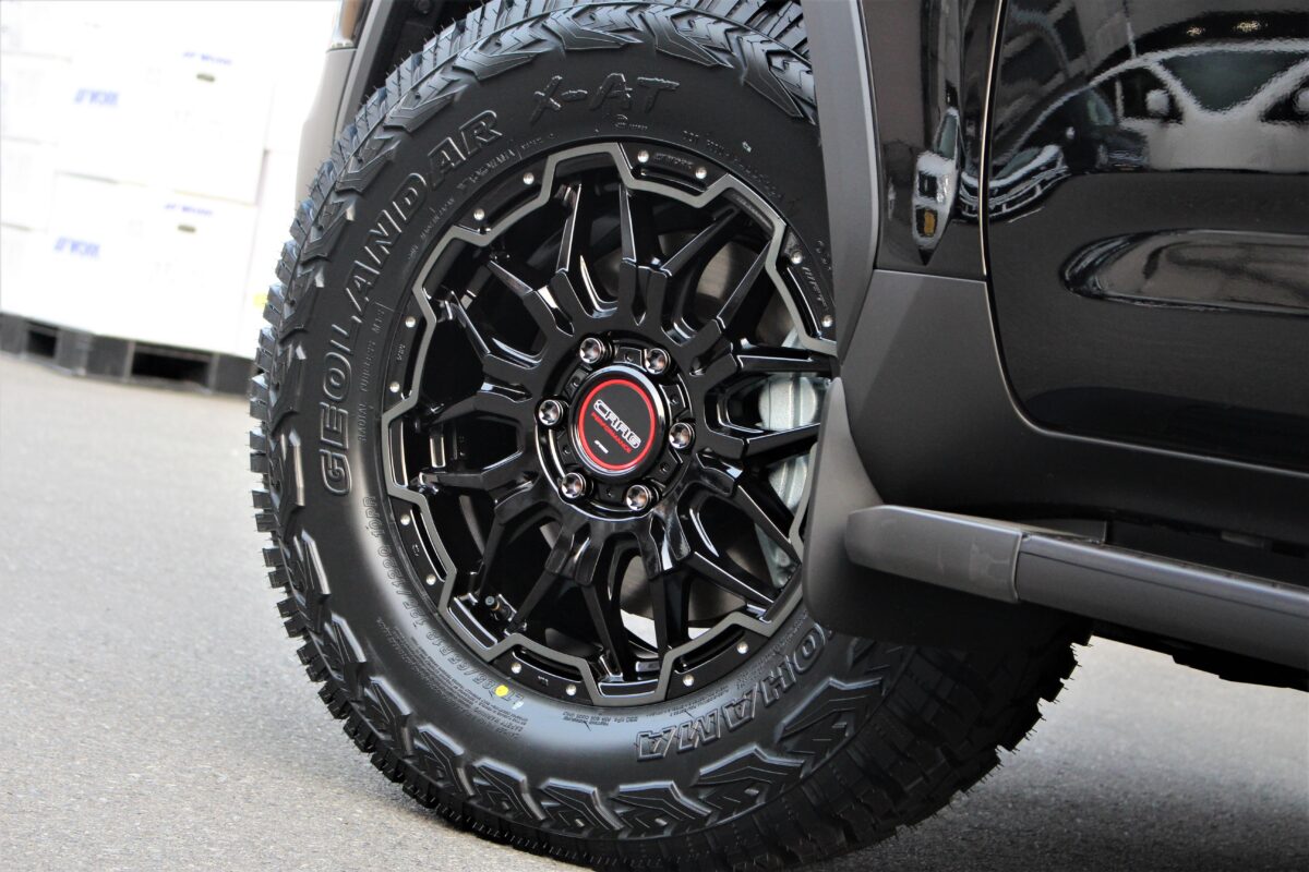 こんにちはクラフト相模原店です! 先週末から開催しているクラフト春のカスタムフェアin相模原店 残すところあと2日間となりました(^^) 各メーカー最新ホイールを中心に引き続き大展示中となります♪   残り2日間では同乗体感試乗可能なデモカーが変更となります。 先週はGR86でしたが、今週末は「ジムニーシエラ」に!   タイヤホイールは「クリムソン ディーンBJメキシカン ショットチャコールブラック」 クロスカントリー等アメリカンなスタイルが人気のクリムソンホイール。 それに合わせるのは大人気 BFグッドリッチ KO3 225/70-16となります☆   足回りは4×4エンジニアリング カントリーサスペンションキットがインストール済。 純正に比べかなりしっかりとした足回りに変更されています。 先週と同様にこちらも同乗体感試乗が可能ですので 気になる方は是非体感してみてください☆   クラフト春のカスタムフェアin相模原店は2026年3月1日まで開催中。 皆様のご来店お待ちしております(^^)   相模原店イベント情報はこちら↓↓↓