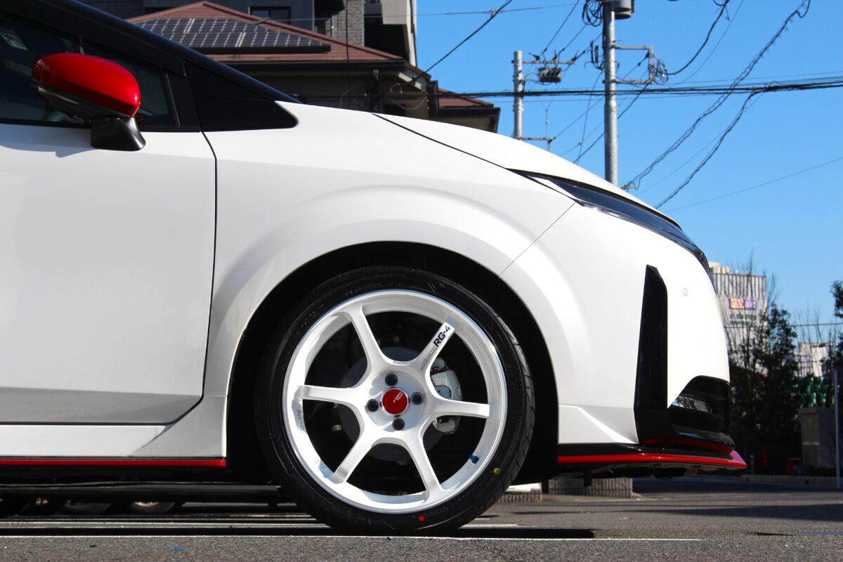 RG4は純正とほぼ同じ出ヅラのままインチアップが出来るのでノーマル車高でも問題無く装着OK!