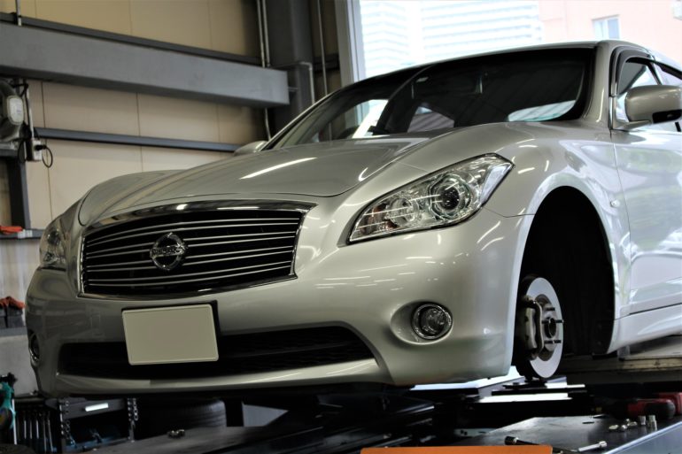 程よくローダウンされたフーガにWORKホイールをツライチマッチングにて取付!