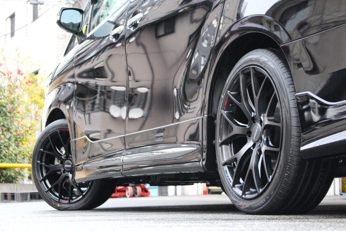 こちらのお車にはY字スポークが特徴のRAYSホイールを装着させていただきました!