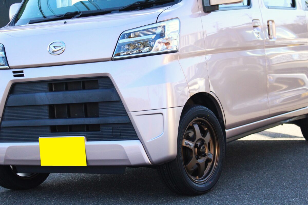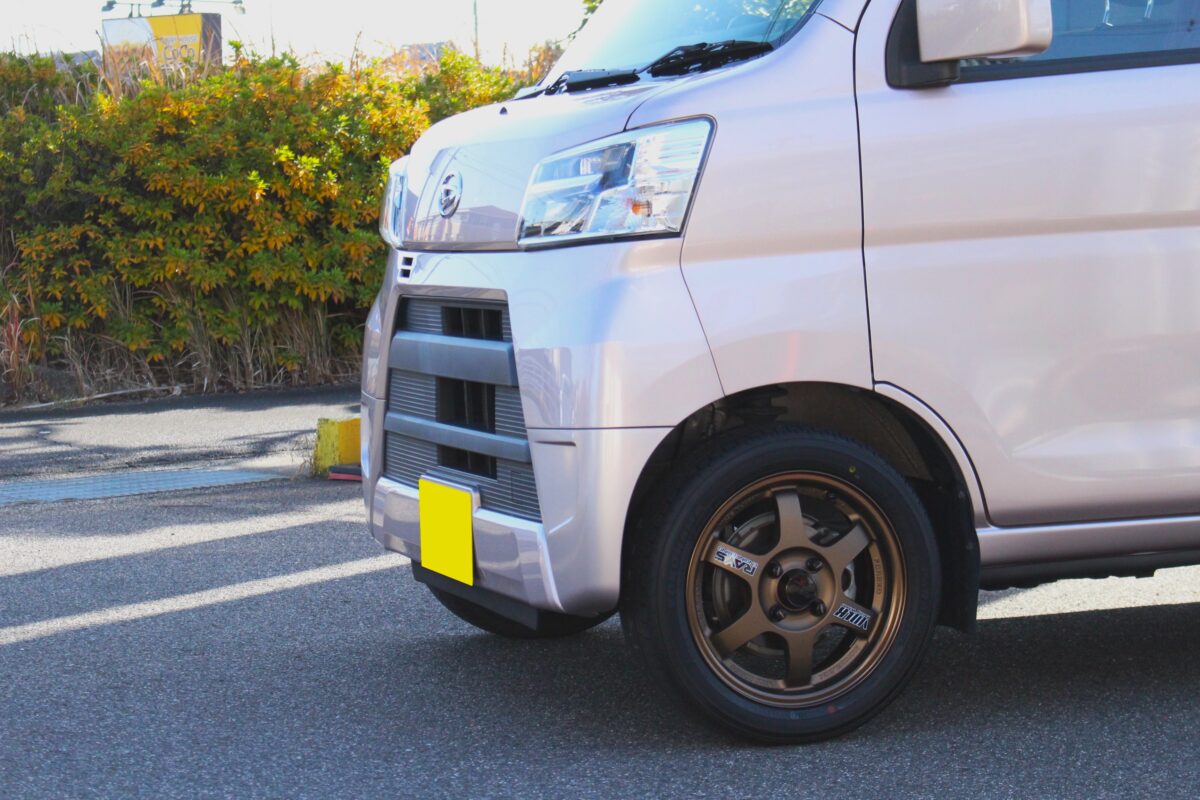 今回、取付けるのは、14インチモデル。昨今、Kバン向け荷重対応タイヤもございますので、