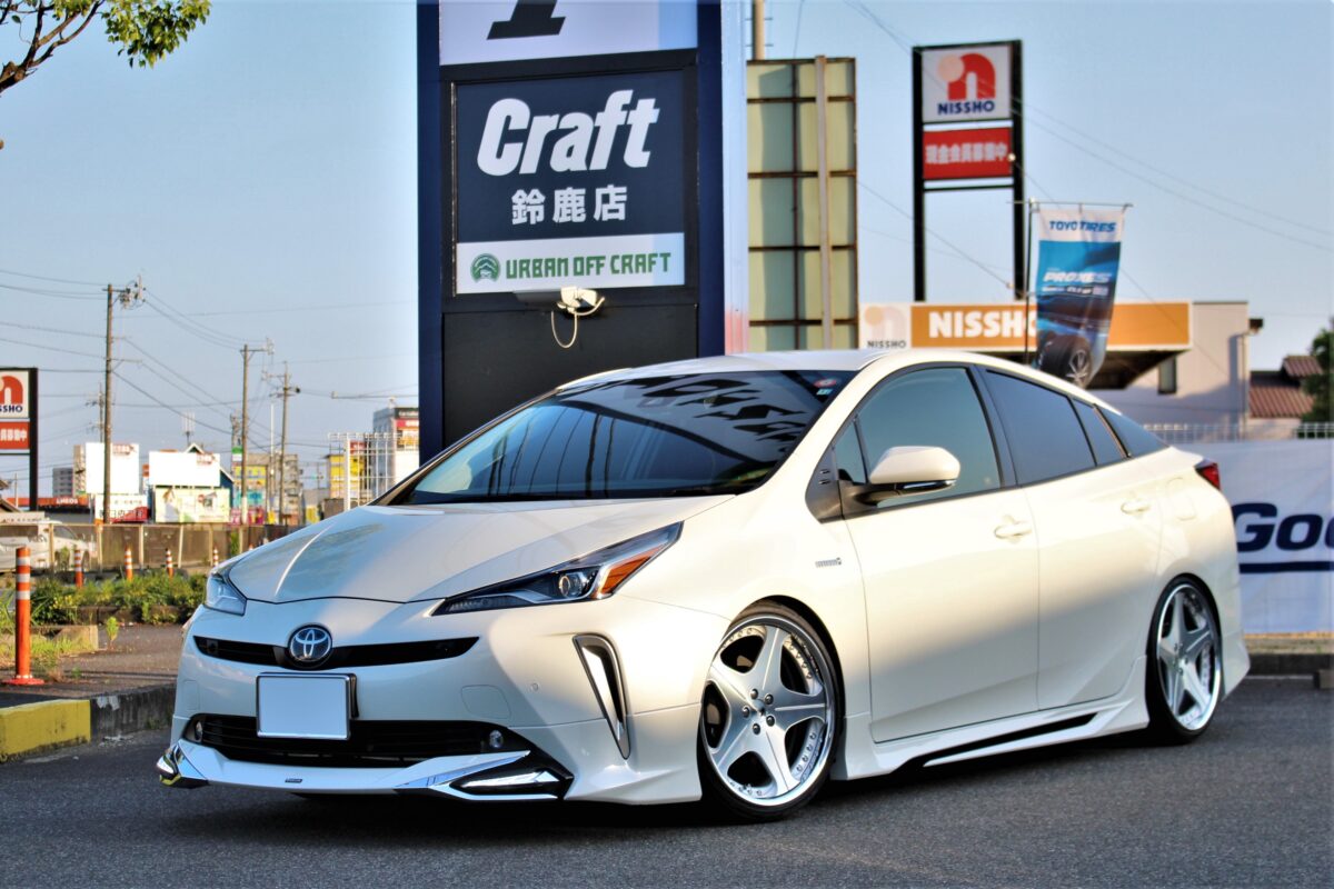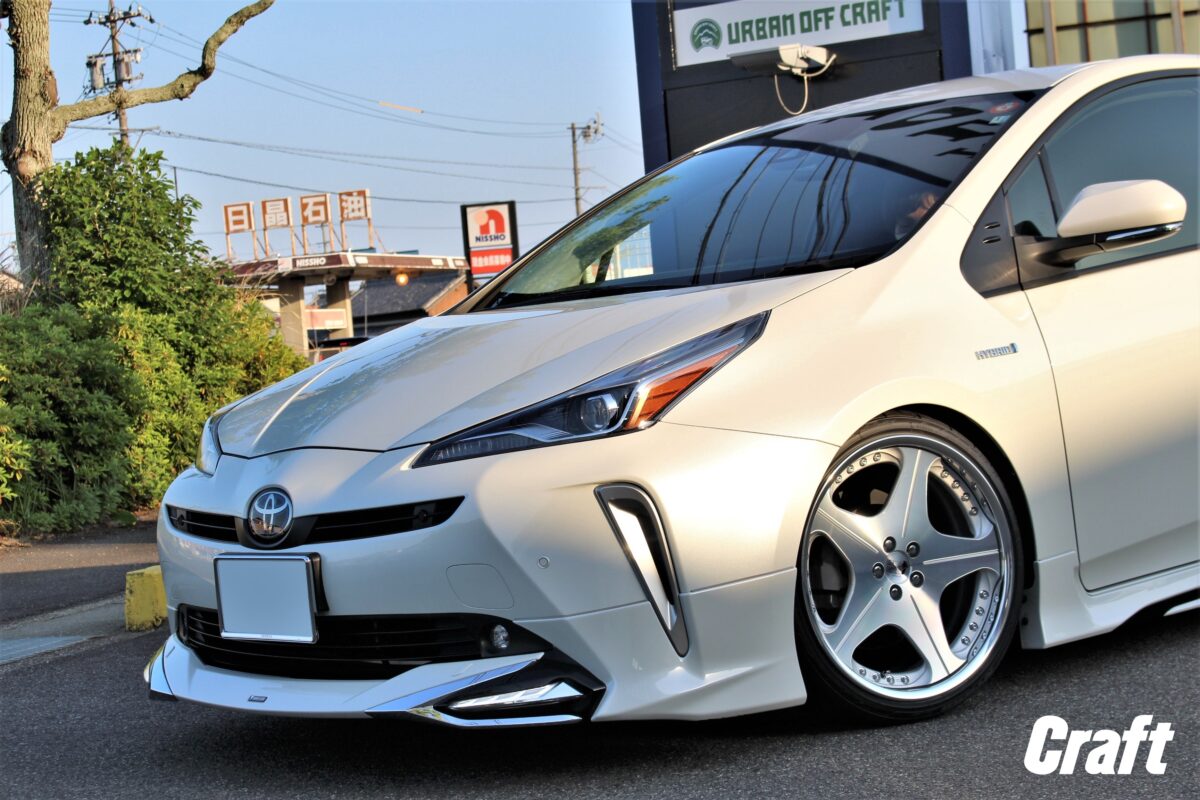 いつもありがとうございます!クラフト厚木店・のりかずです。   本日ご紹介するのはT様・60プリウス!   以前当店でRSR Ti2000(ダウンサス)を装着させていただいたおクルマですが、今回はタイヤ・ホイールをオーダーいただきました。   入荷までに少々お時間が掛かった事もあり、本日は待ちに待ったお取り付けの日となります。   装着したホイールはこちら↓ 「WORK グノーシスCVS 20inch」   ひねりデザインが特徴のホイールになります!   スポーク自体がひねっているわけではなく、スポークの角度を変えてひねっているように見せているホイールです!     今回選択したカラーは「ブラッシュド」。   上の画像をご覧頂いてもわかる通り、白いボディーとの相性もバッチリ👍     出ヅラに関しては事前にオーナー様とご相談させていただき、実車計測を行いながら算出。   画像をご覧頂いてもわかる通りきれいな出ヅラに仕上がってますよね♪   実車計測を行いかっこよく仕上げたいオーナー様はクラフト厚木店にご相談くださいね~     WORKグノーシスシリーズ(2ピースモデル)は1mm単位でホイールインセットをオーダー出来るホイール。   なので、お好みの出ヅラへ仕上げる際やツライチ仕様を実現させやすいホイールとなります!   今回は保安基準内でできるだけツライチにセッティングさせて頂きました!   ツライチを目指したいオーナー様はクラフトにご相談くださいね~     T様この度はクラフトをご利用いただきありがとうございます!   また遠方からのご来店ありがとうございました!   愛車はイメージ通りに仕上がってくれましたね♪   ぜひまたクラフトに足を運んでくださいね~!   それでは楽しいカーライフを!
