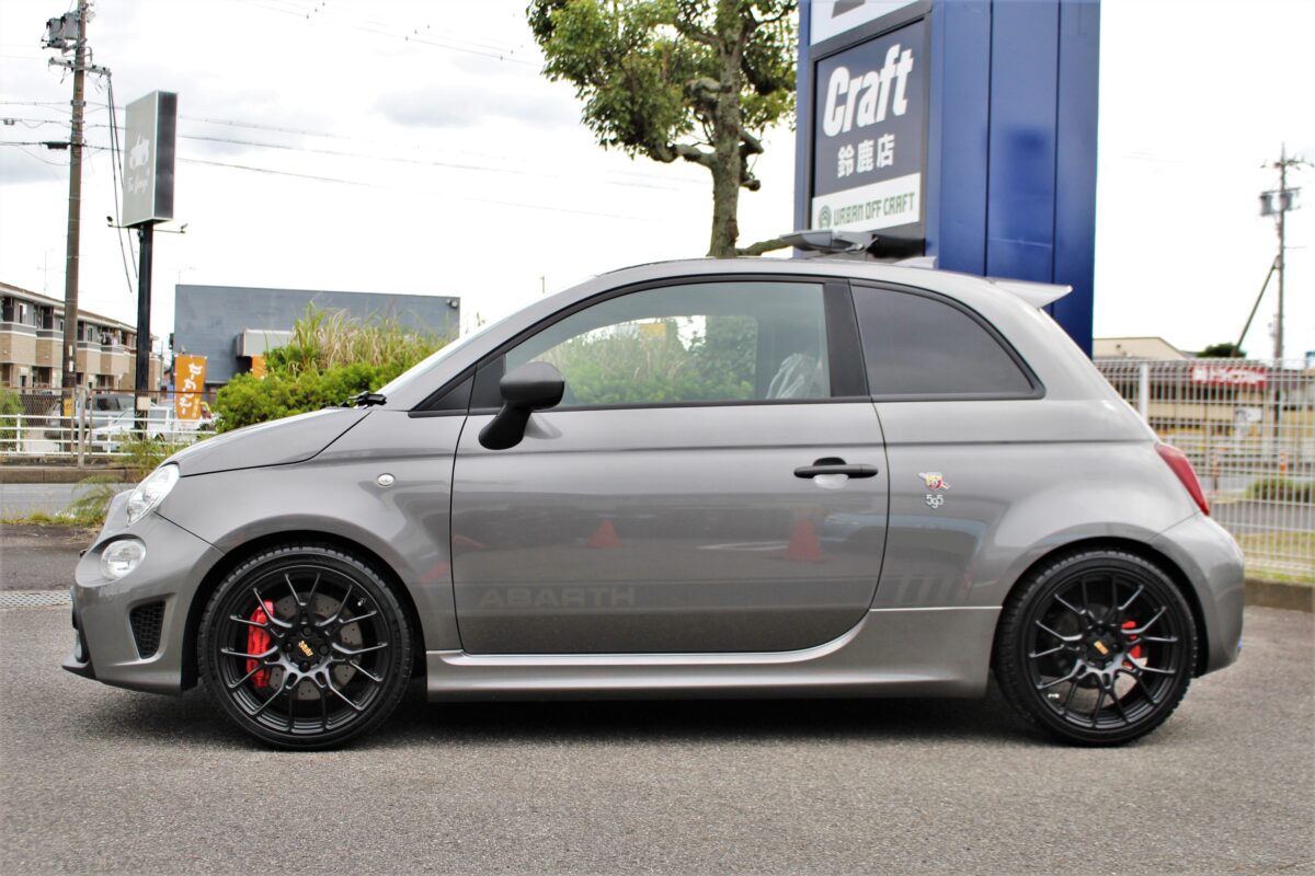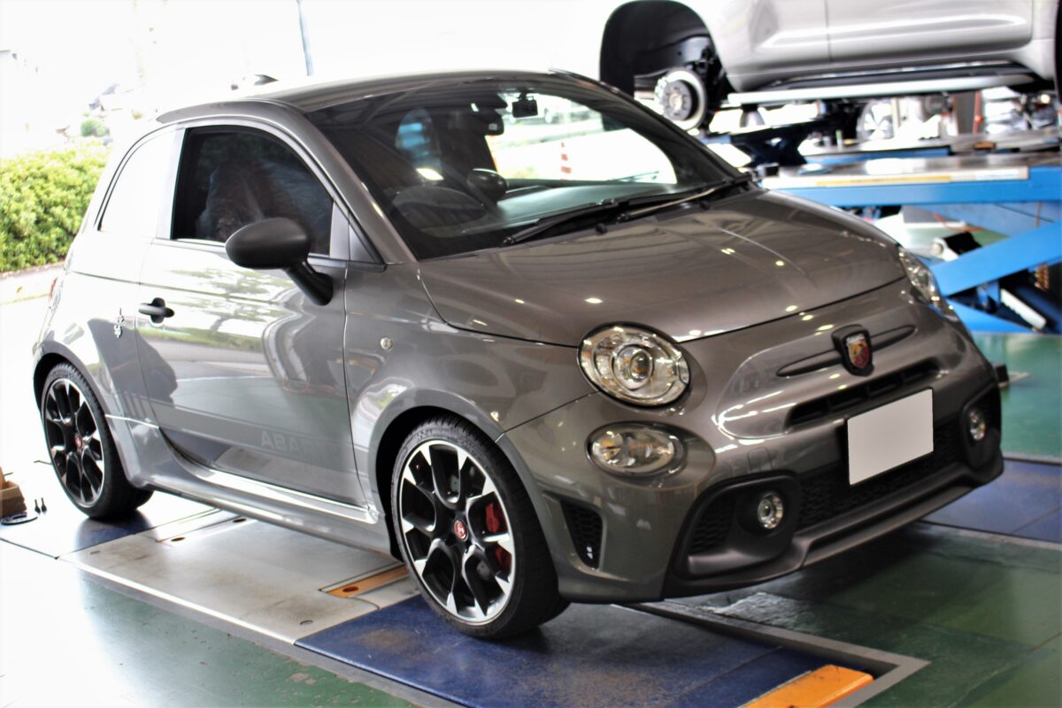 こちらのアバルトはダウンサスでローダウン済みの車両。