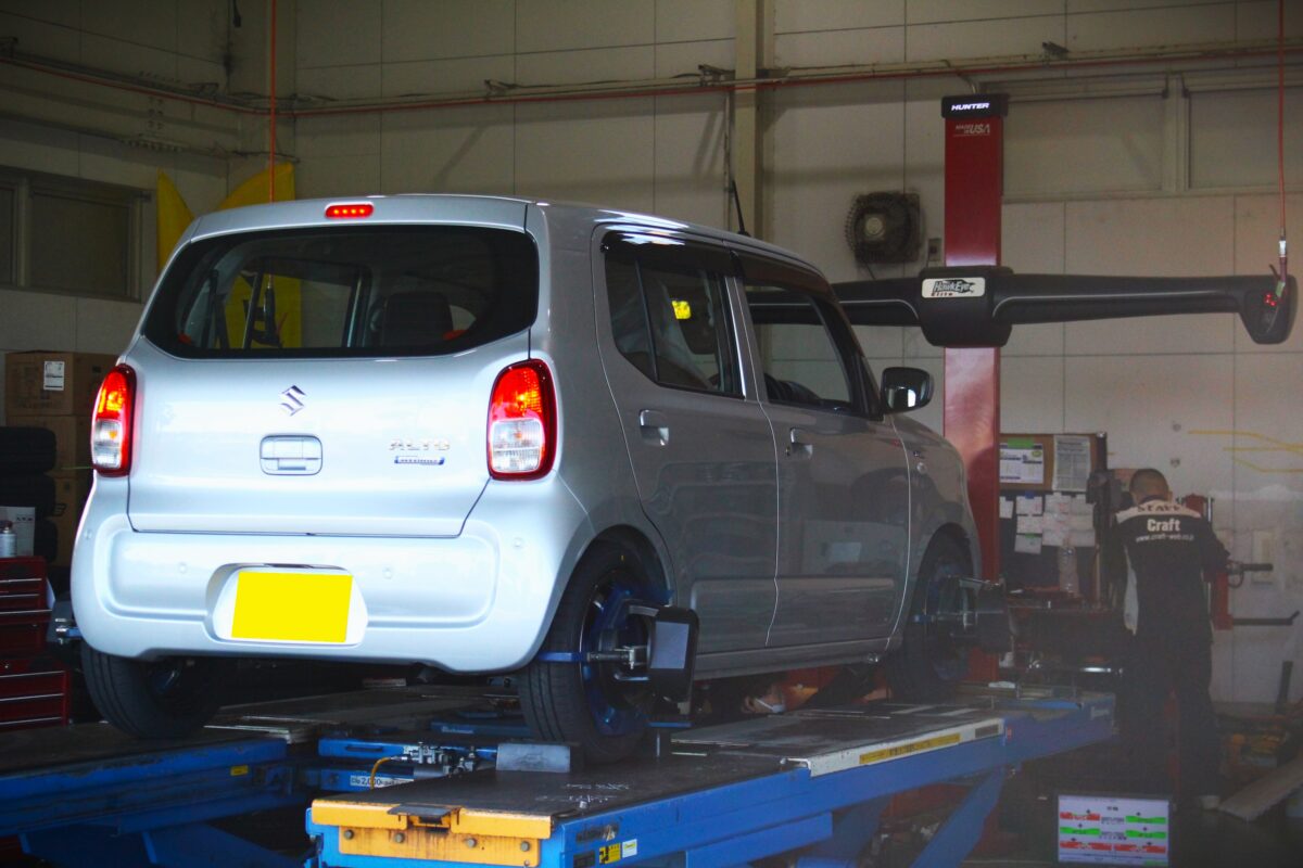 ダウンサス・NEWセットの装着が完了したら仕上げのアライメント作業へ。