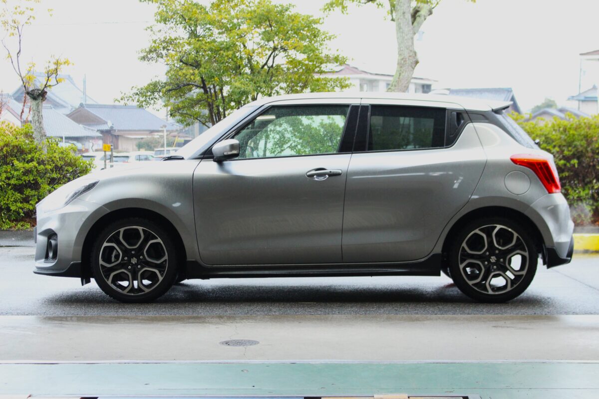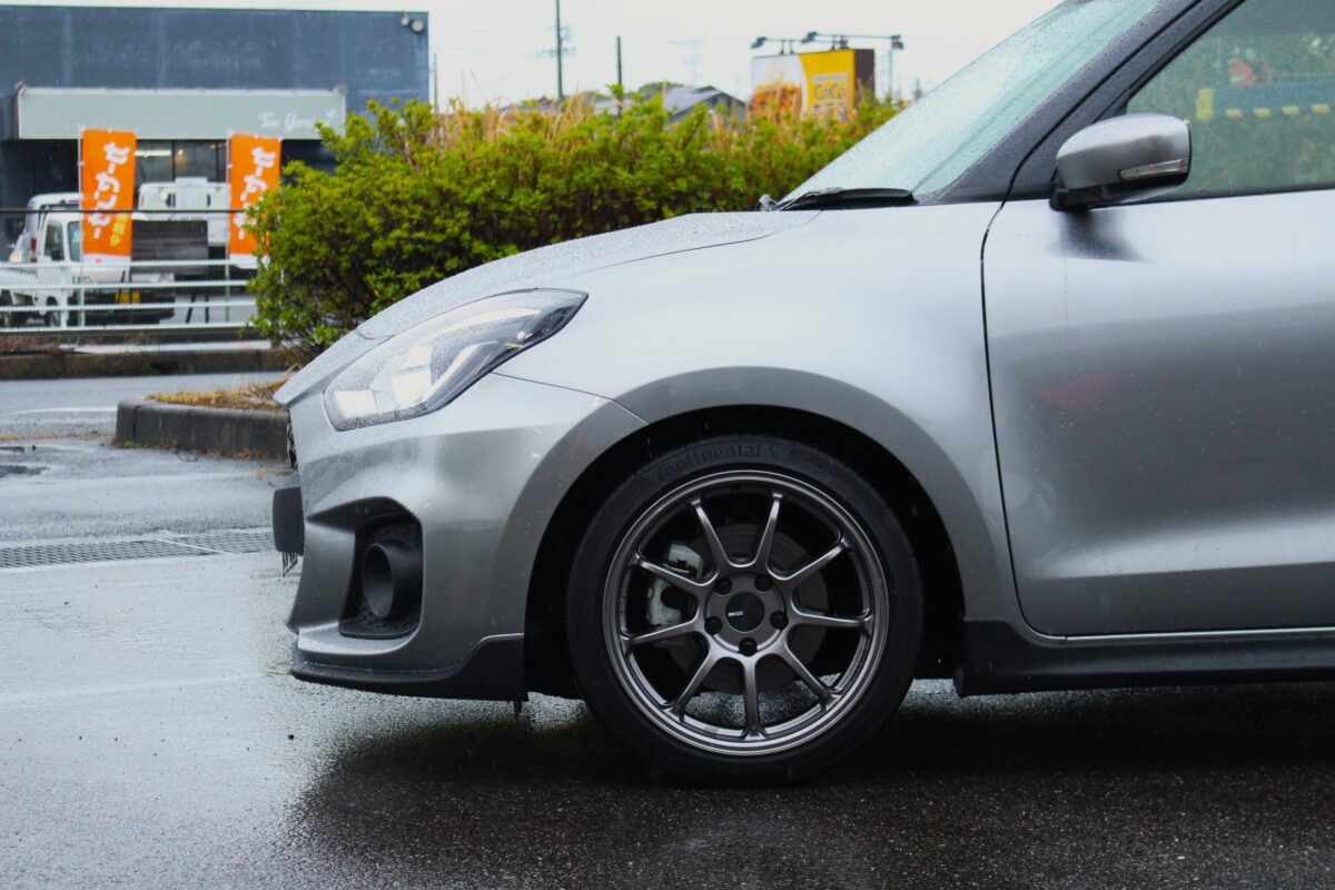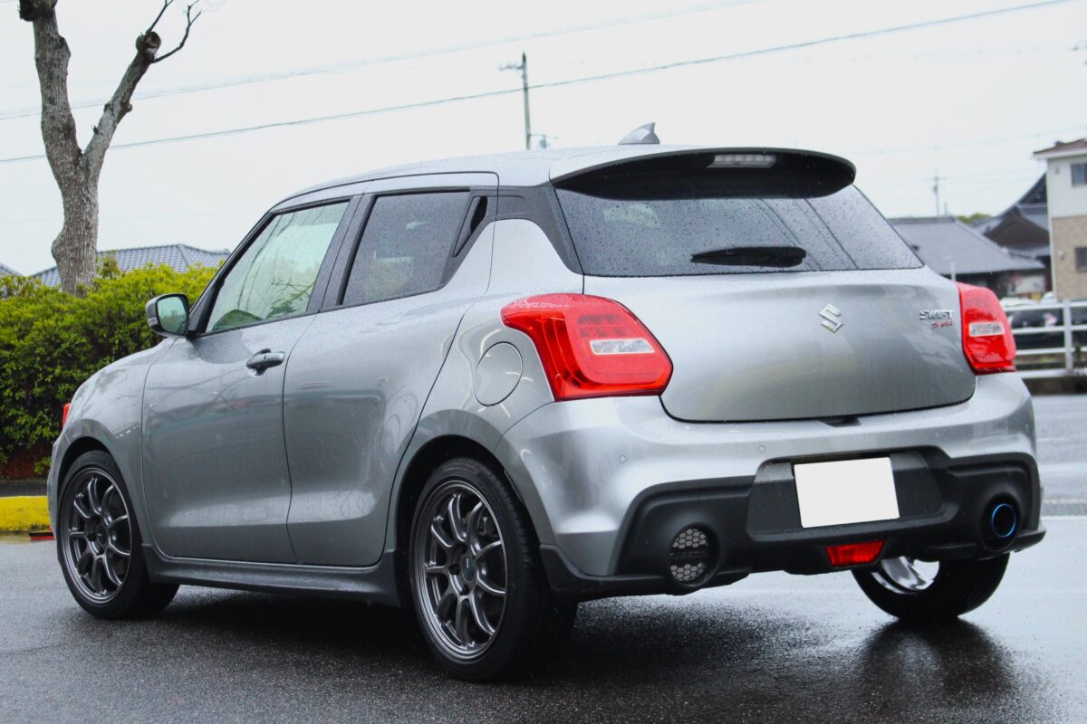 標準車高も低めなスイスポですが、ローダウン有無での仕上がりは別物。