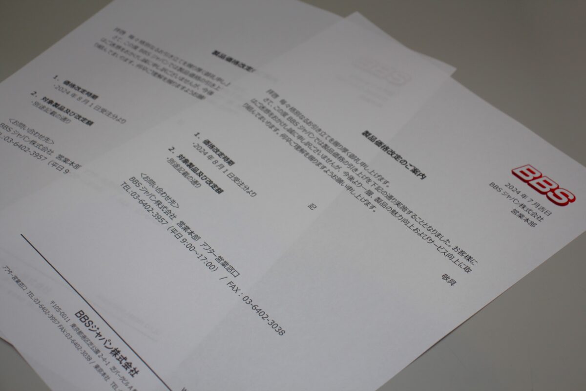 2024年8月1日(木)受注分よりBBS製品が価格改定】されます。。。