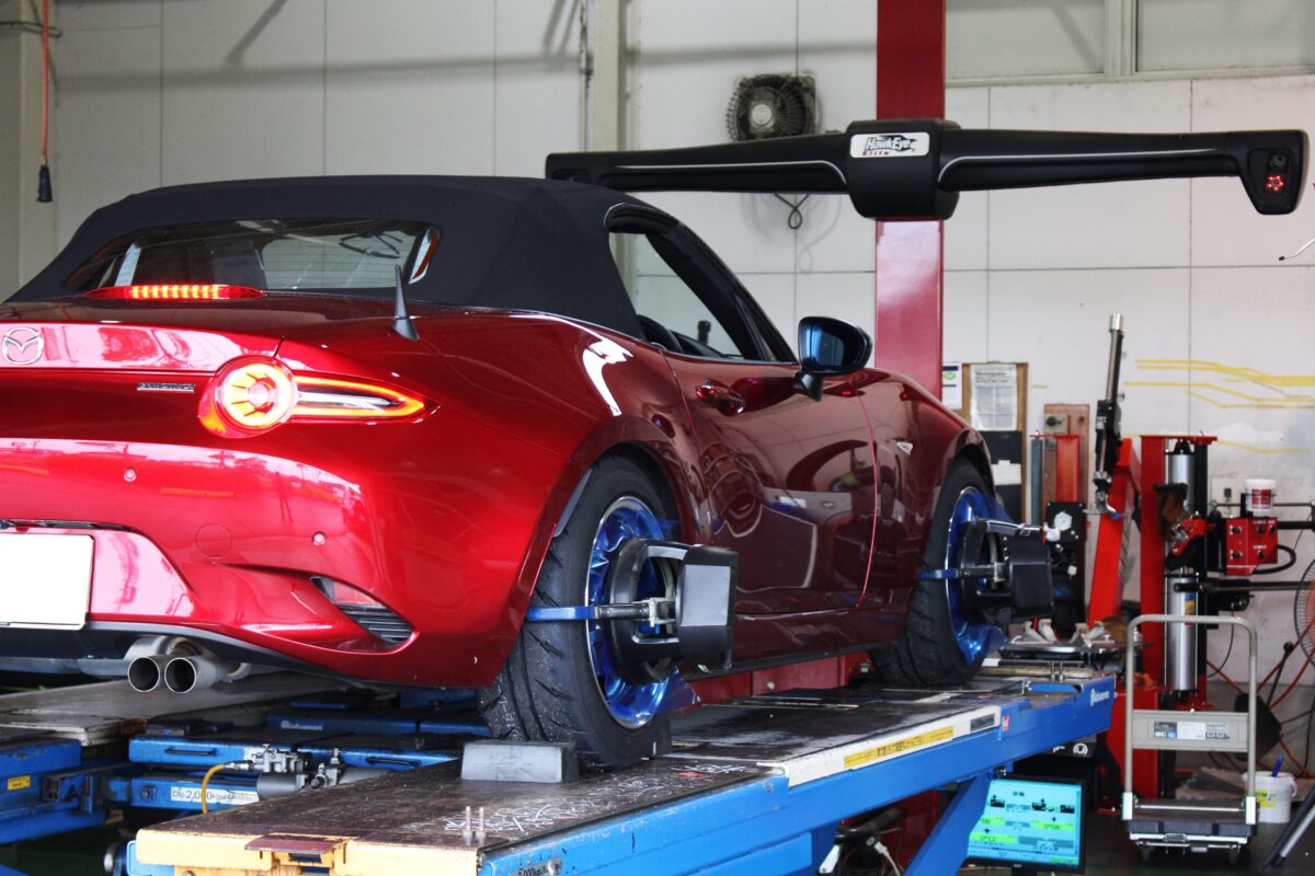 前後フル調整のロードスターはアライメントによって走りが変わる変幻自在の楽しい車。