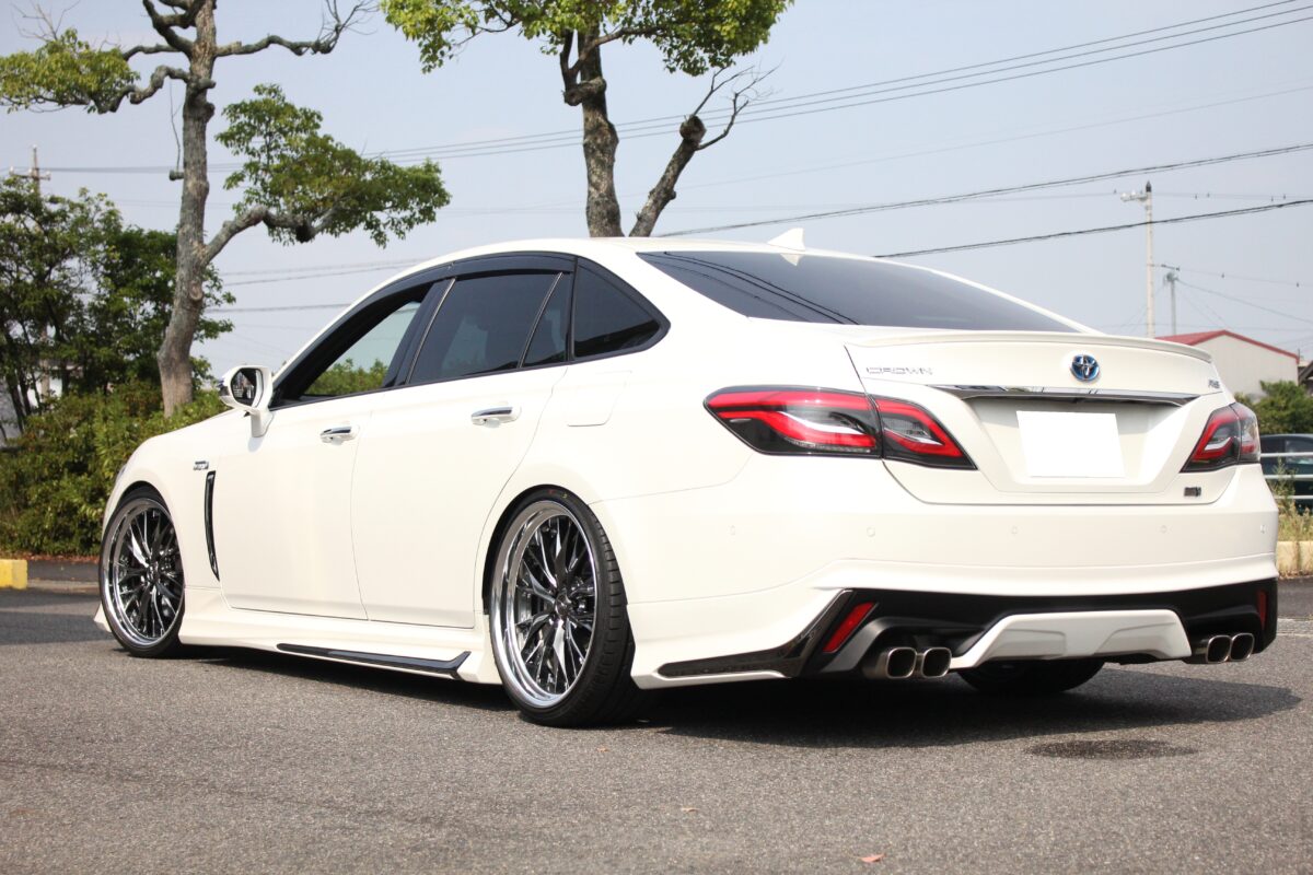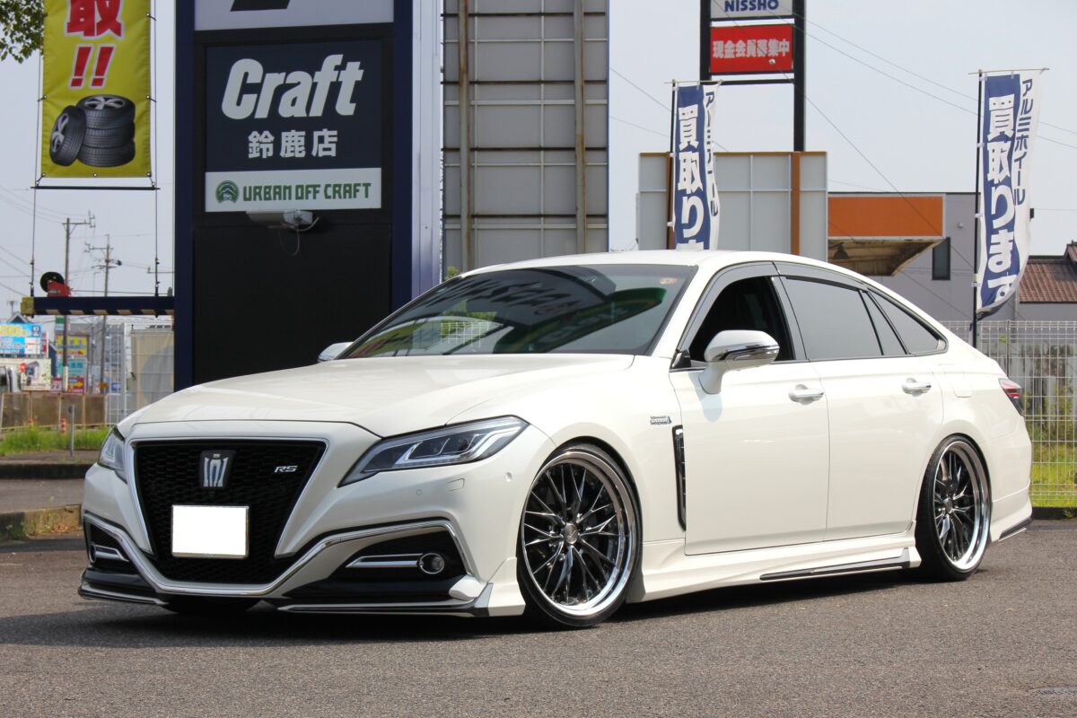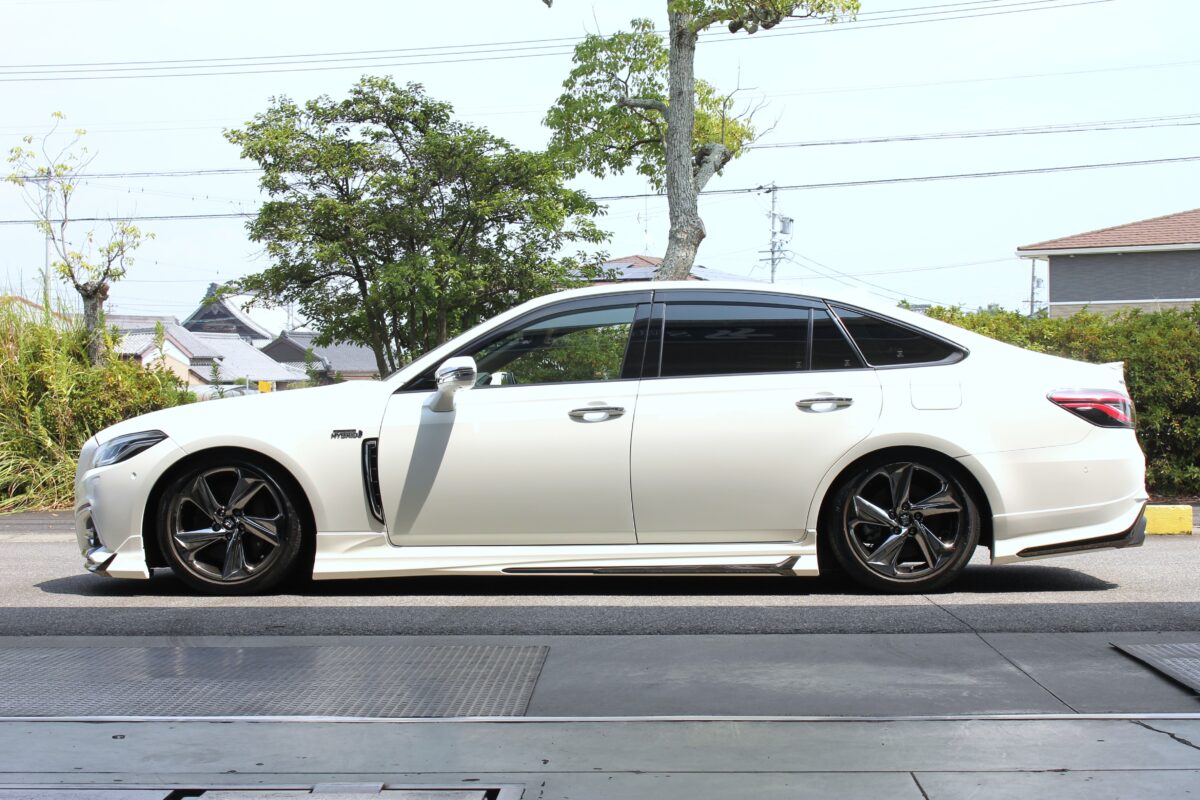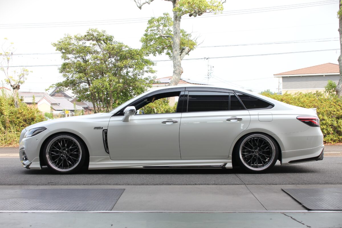 本日のカスタムはエアサス装着の220クラウン。エアサスなので車高がボタン1つで自由自在、となれば「愛車を愛でる」にはサゲ確定!