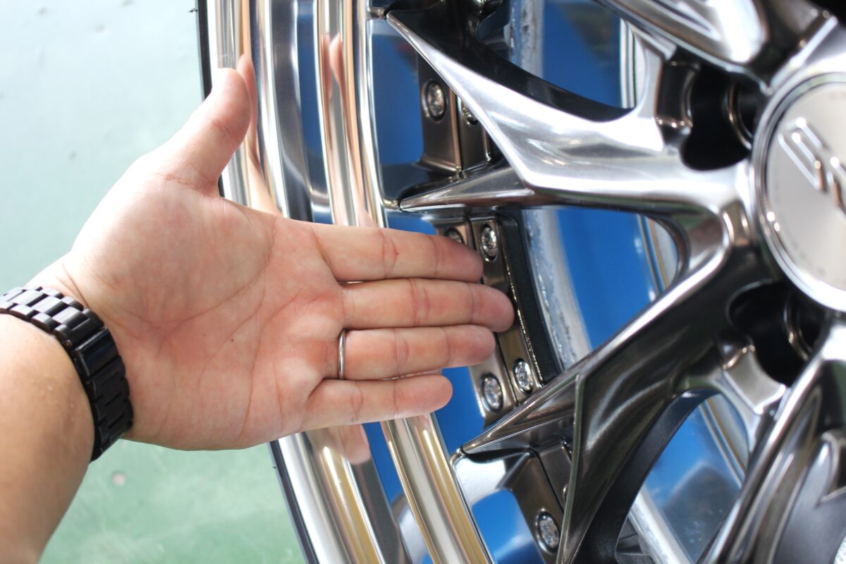 実車計測にてサイズ決めを実施、リアのアウターリムは70mmオーバーを確保!