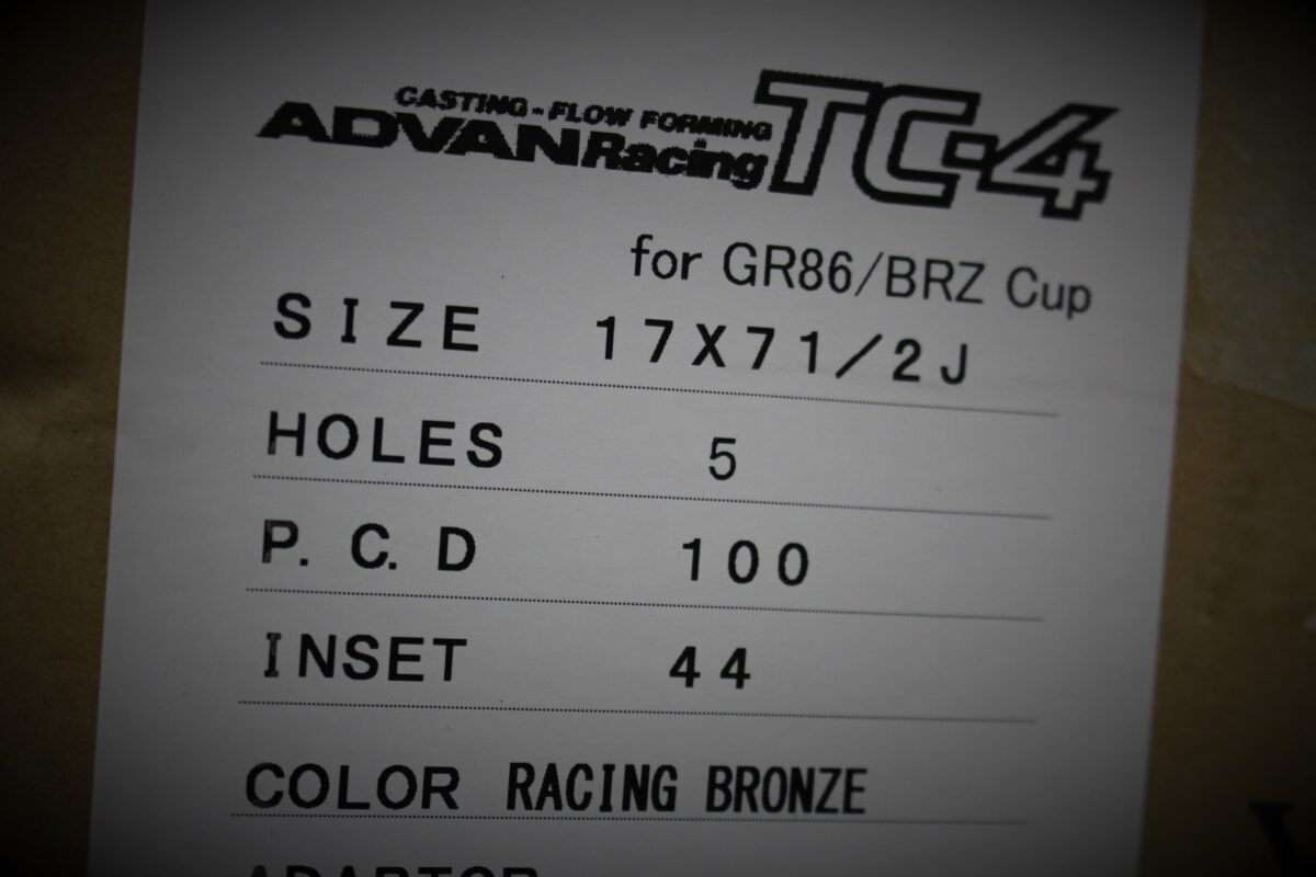 5本スポークホイールの代名詞!!アドバンレーシングTC-4をGR86の足元へ