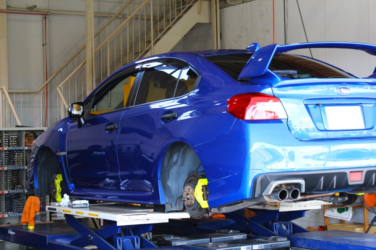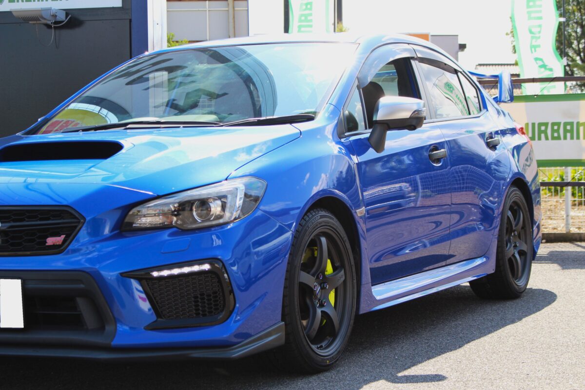 本日ご紹介させて頂くのはWRX STI。ご用命内容は"スタッドレスタイヤセット"への交換作業。