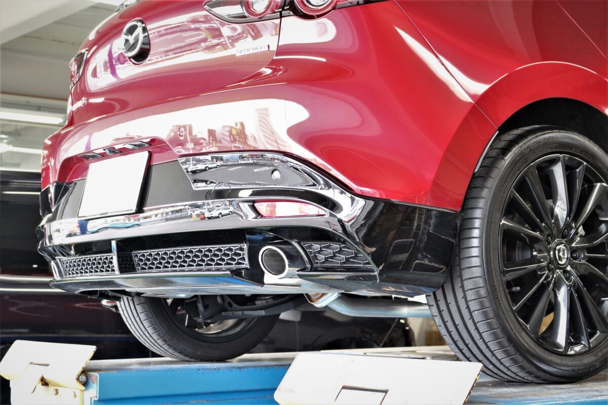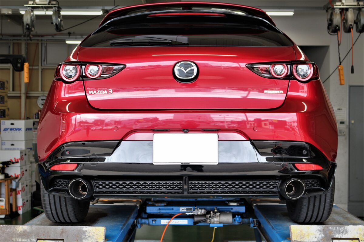 マツダ3ファストバックのマフラー交換デス。