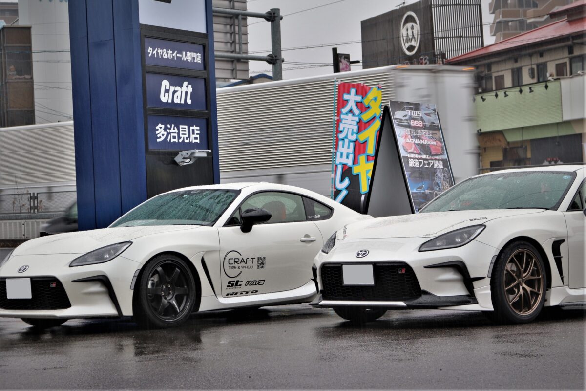 ■ 周年祭開催中!スポーツカーカスタムフェア スポーツカーカスタムフェア開催中のクラフト尾張旭店です。 デモカーがやってきました! カスタムされたGR86です^^ 今日から3/29(日)までの展示予定です♪ 車高調でローダウン。 そして人気のサンナナを装着中です。 スポーツカーにホワイトカラーのホイールは似合いますね! 逆側はブラックのサンナナ装着中! 足元をブラックで引き締めかっこいいスタイルになっています。 左右で色違いになっていますので、カラーで迷われている方はぜひ参考にしてください。 有名ブランドホイールが大集合。 TWS&RAYSの鍛造ホイール大量展示中です。 フェア期間中はご成約特典もあります^^ ぜひこの機会に! BBSホイールもフェア対象です。 LM・LM-Rは今も人気のフラッグシップモデルです。 ジュラルミン鍛造のRI-Dのサンプル品もありますよ~ アドバンレーシングも大集合! 5本スポークのアドバンGT・TC-4はとても人気です。 スポーツカーカスタムフェアは3月29日(日)までです。 たくさんのご来店お待ちしております!!