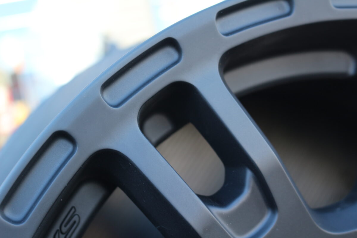 リムのフランジ部分には、軽量化とスタイリッシュさを