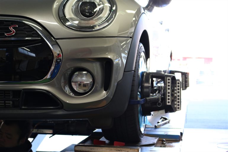 F54ミニクーパーのアライメント作業。