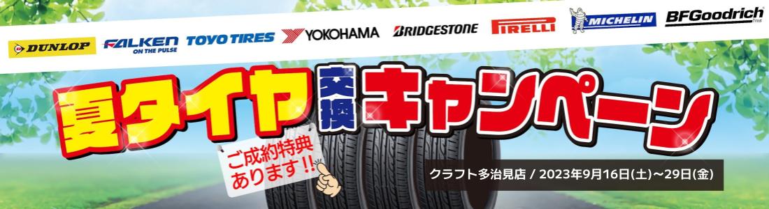 9/16(土)~9/29(金)の期間で、「夏タイヤ交換キャンペーン」を開催します。期間中にタイヤ4本ご成約で、スペシャルプライス&ノベルティプレゼント!!
