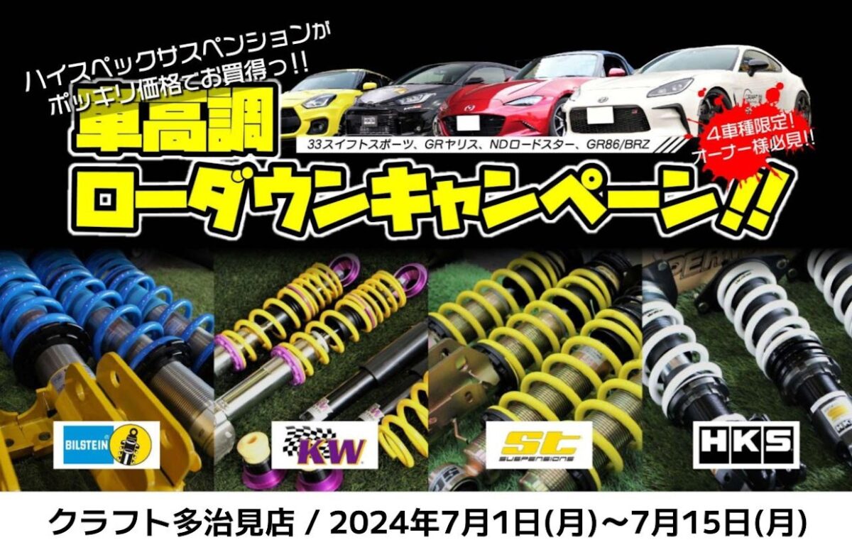 ■ クラフト多治見店限定で車高調とサスペンションのキャンペーンを開催!