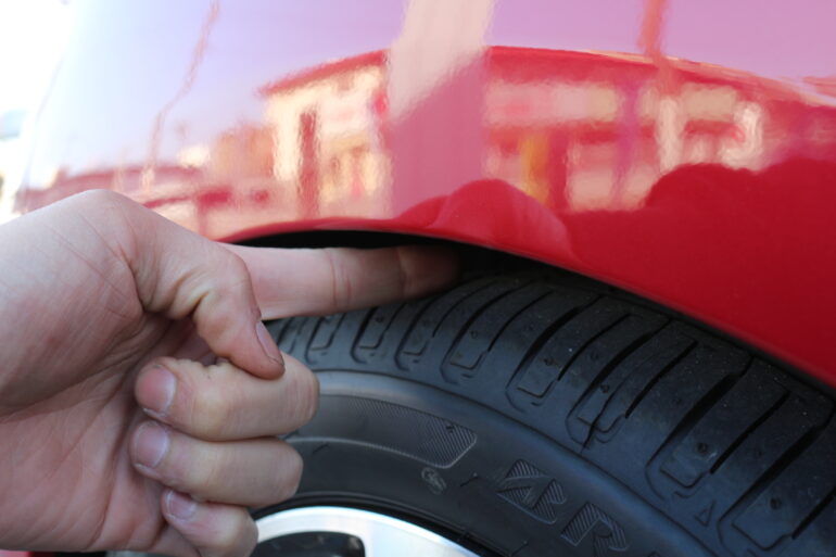 O様の念願のホイール、サイズを入れる