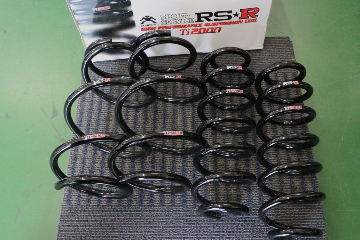 当店で何度もご紹介させていただいている人気ダウンサス!RS☆RTI2000👏通常のRS☆Rと違いチタンが配合されているため錆びづらくヘタりづらいという特徴を持っています。