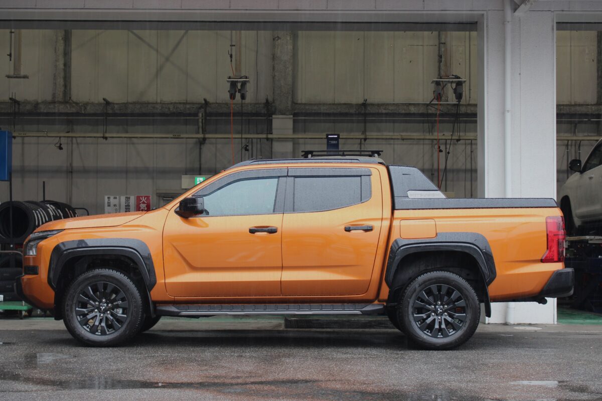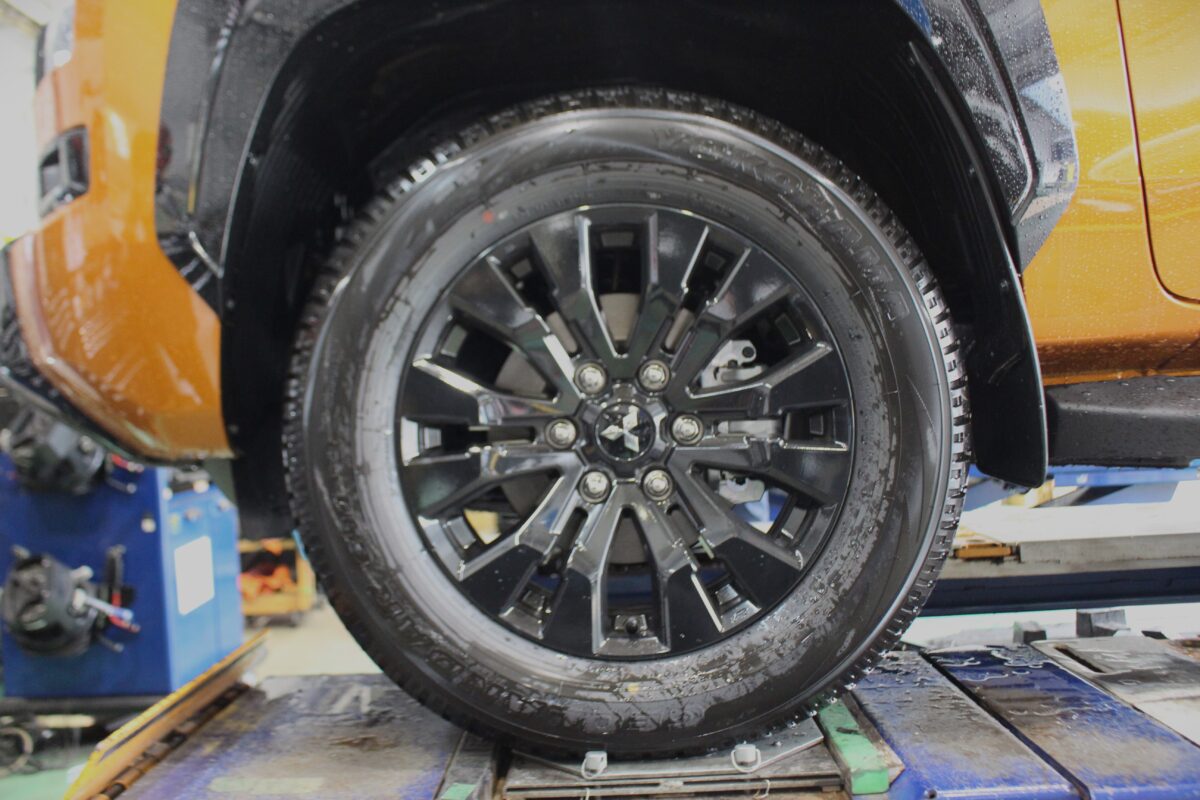 三菱 トライトンが初入庫!!純正車高ではどのサイズが履けるのか!?