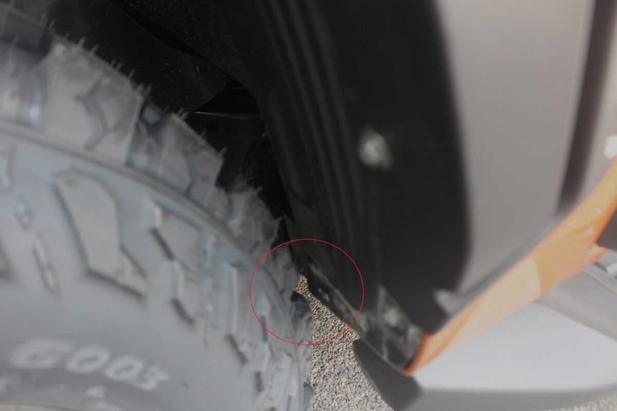 赤丸の部分やマッドフラップが付いている部分の干渉はなく走行が行えました!!!