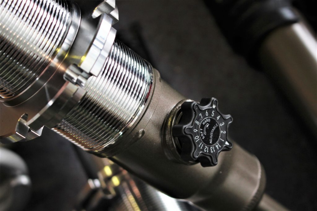 フロント部は車高調整機能付き。また、前後14段減衰力調整機能付きなので