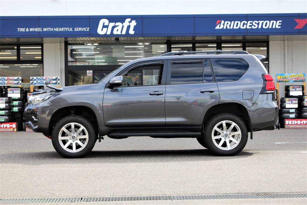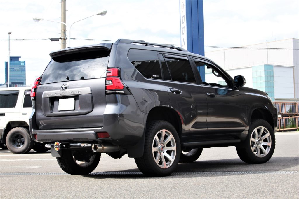 150系プラド特有の前下がり車高の補正も行いつつ、MASSIVEなフォルムも手に入れられますネ。