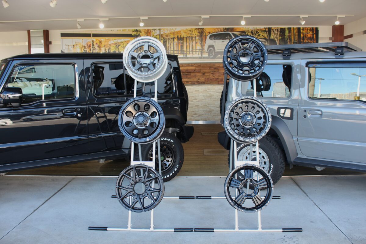 当店にあるランクル用ホイールとジムニー用のホイールを展示中!!!