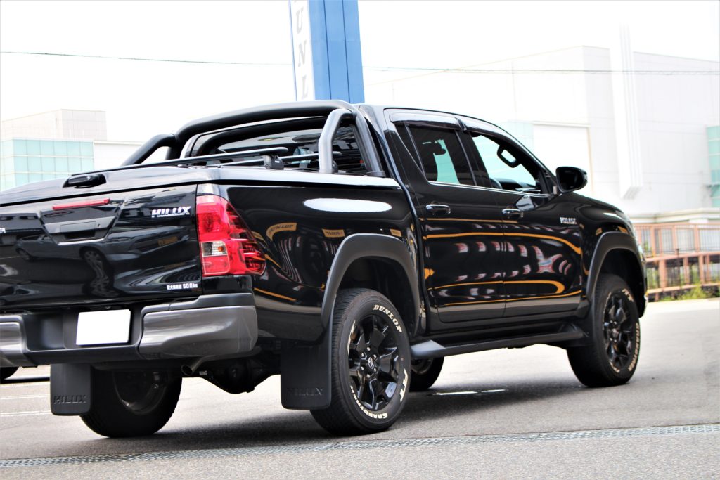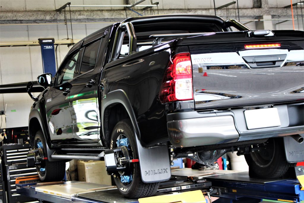 フロント・リアで約40mmほどの車高差があるハイラックス。