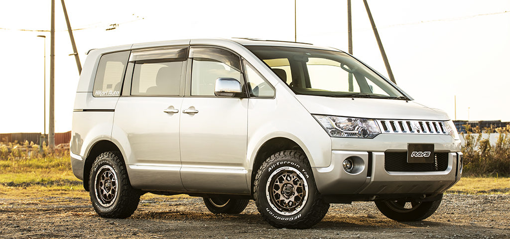 16インチの場合、当店でもご用命の多いデリカD:5に装着するとこのように。